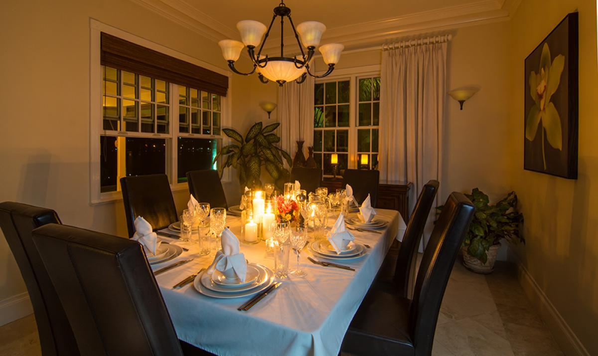 An inside dining area adjoins the living room. But most guests opt for the shaded verandah for home-cooked breakfasts, lunches and dinners. This comfy furnished verandah is also the gathering spot for drinks and hors doeuvres as the sun sets over the point just beyond Calypso Shores beach. If you wish to dine away for the villa one evening, The Houseboat is just five minutes away and offers an excellent menu on a floating restaurant with a wonderful view over the water.