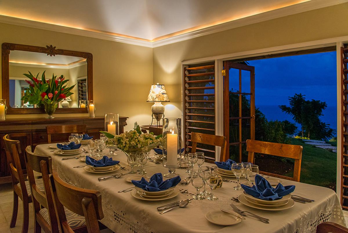 The villa's layout in three wings +cottage is marvelous for two- and three-generation families. Cielo is notable for not only its breathtaking view but also for its spacious bedrooms; very large lawns for kids to play; and its marvelous, much-lauded Chef Valerie who knows her stuff brilliantly when it comes to delighting kids and the most discriminating adults too. This home away from home is spotlessly clean and loaded with amenities like flat-screen TV's in every room, wifi throughout, excellent sound system, glamorous master bathrooms and mirrored bar with icemaker. The verandah is well-furnished and extraordinarily comfortable. This wonderful porch overlooks the pooland beyond to"that view." Sunsets from the verandah and the pool terrace are magic and memorable.Have your camera ready.
