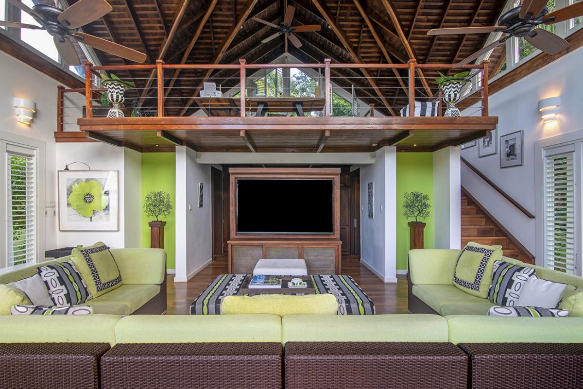 Majestic Royal Palms line the paved entrance lane. A dramatic spiral staircase leads to the large central Great Room which opens to everyones favorite gathering place, the covered sitting and dining verandah. Just beyond the verandah is the long, sparkling pool and endless view of the sea. A separate media room with full bar features an 80" flat screen television and state of the art home theatre system for family movie nights or executive presentations.
