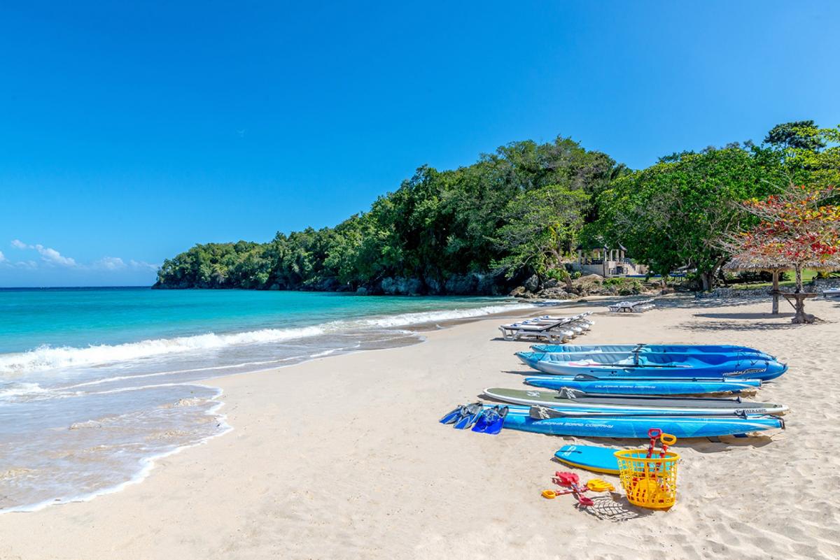 The beach is soft, the swimming water is wonderful. The gardener will place comfortable beach chaises in the sun or under thatch umbrellas. The staff may surprise you with a torchlight beach feast one night. 300 yards offshore is a live reef; snorkels and masks are provided. On request, the butler will hire jet skis, hobie cats, sea bikes, sailfish, a sunset booze cruise or a deep-sea fishing boat. Most water sports can be paid by credit card at the nearby Prospect Plantation Office. Nearby attractions include tubing on the White River, shopping in Island Village, swimming with dolphins, walking up famous Dunns River Falls, and touring Prospect Plantation (the original Great House up the mountain).