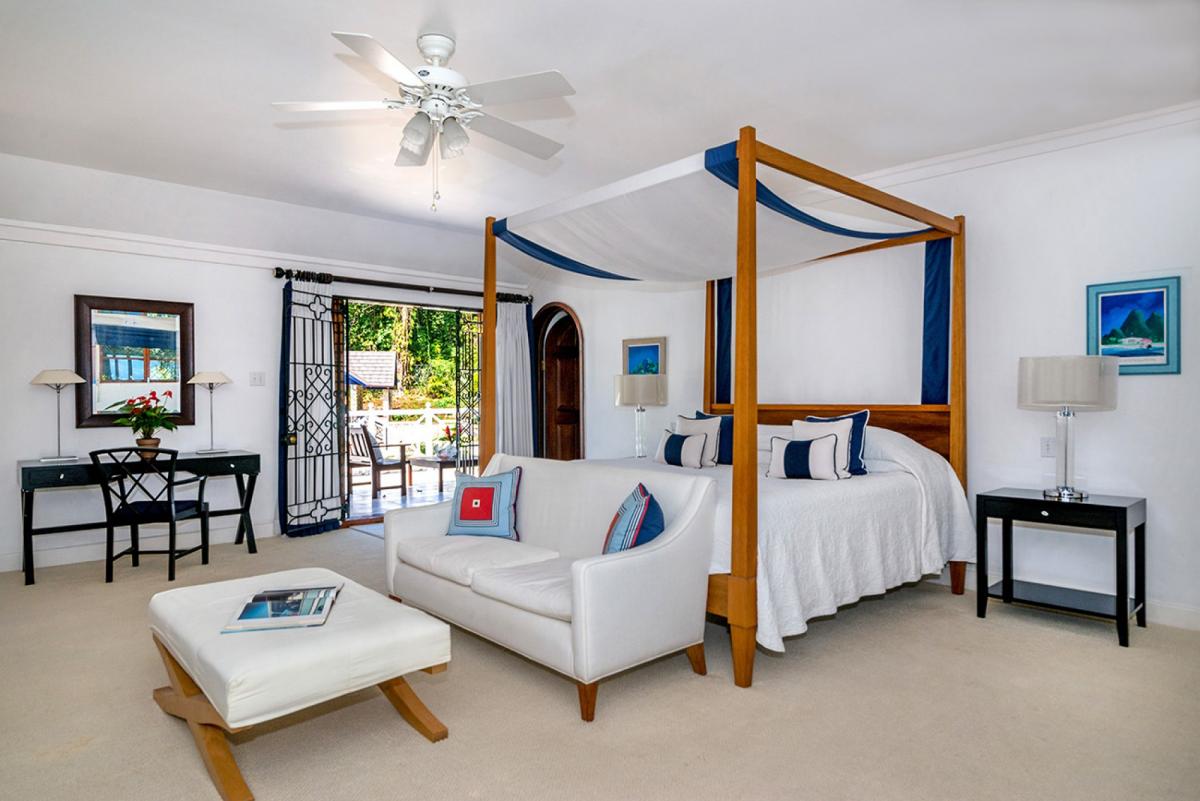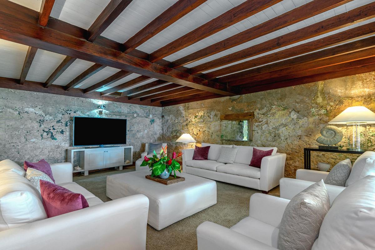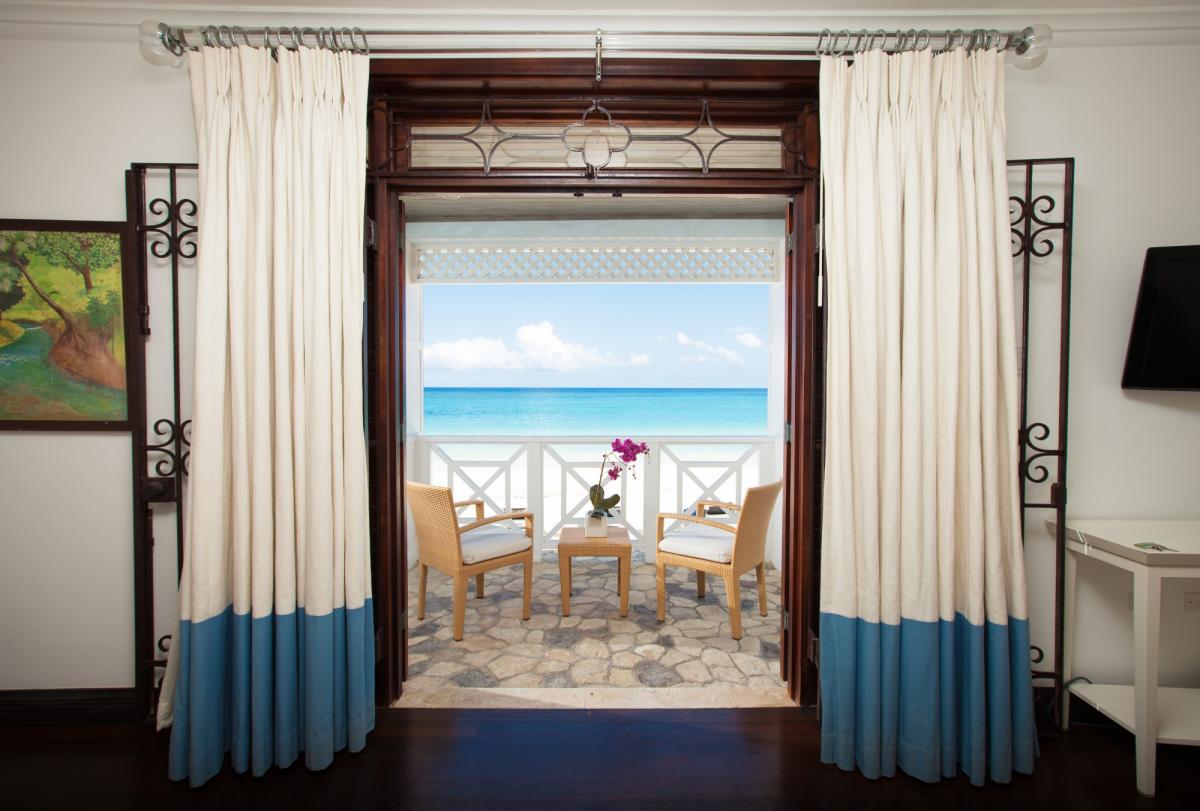 Today, Frankfort is a paradigm of 21st Century laid-back elegance. A brilliant half million dollar renovation introduced Italian Travertine floors, chic and comfortable sitting areas in crisp white fabrics, and stunning Euro-style modern bedrooms with all new en-suite bathrooms and glass-wall showers. All furniture and fabrics were imported from the UK and Europe, many having been designed exclusively for Frankfort by Caroline Shasha Interiors of London. The original two-foot thick rough stone walls and gun slots are still in place, reminders of Frankforts days as a British fort defending against Spanish invaders and pirates. Two old cannons were dug up from the beach and now hold reign squarely on the lawn.