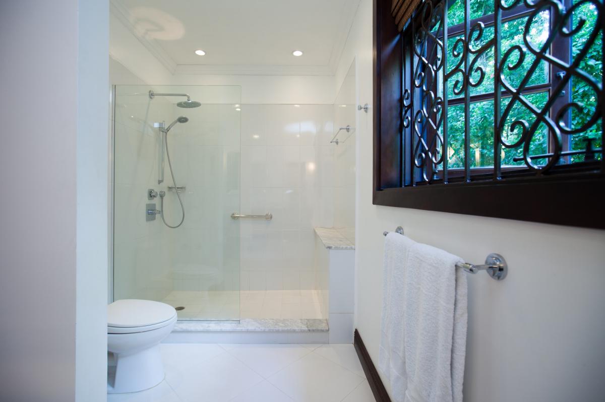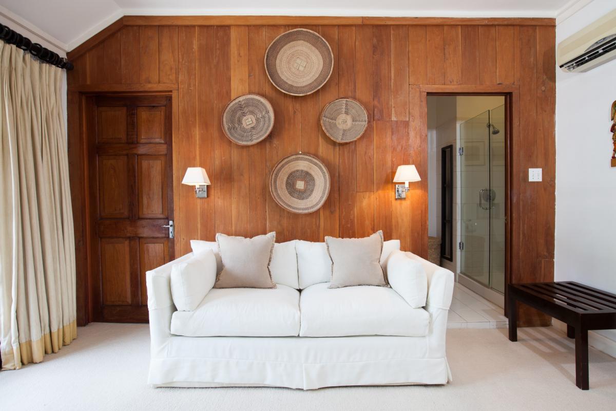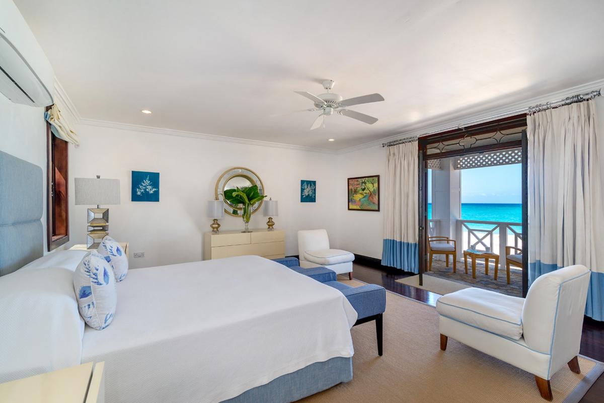 Bedroom 5: This room is located upstairs and is equipped with an optional king-sized bed or twin-sized beds, blackout curtains, remote-controlled quiet air conditioning, and an ensuite bathroom with a double-basin marble vanity and a walk-in shower. Bedroom 5 also overlooks the beach and the ocean.