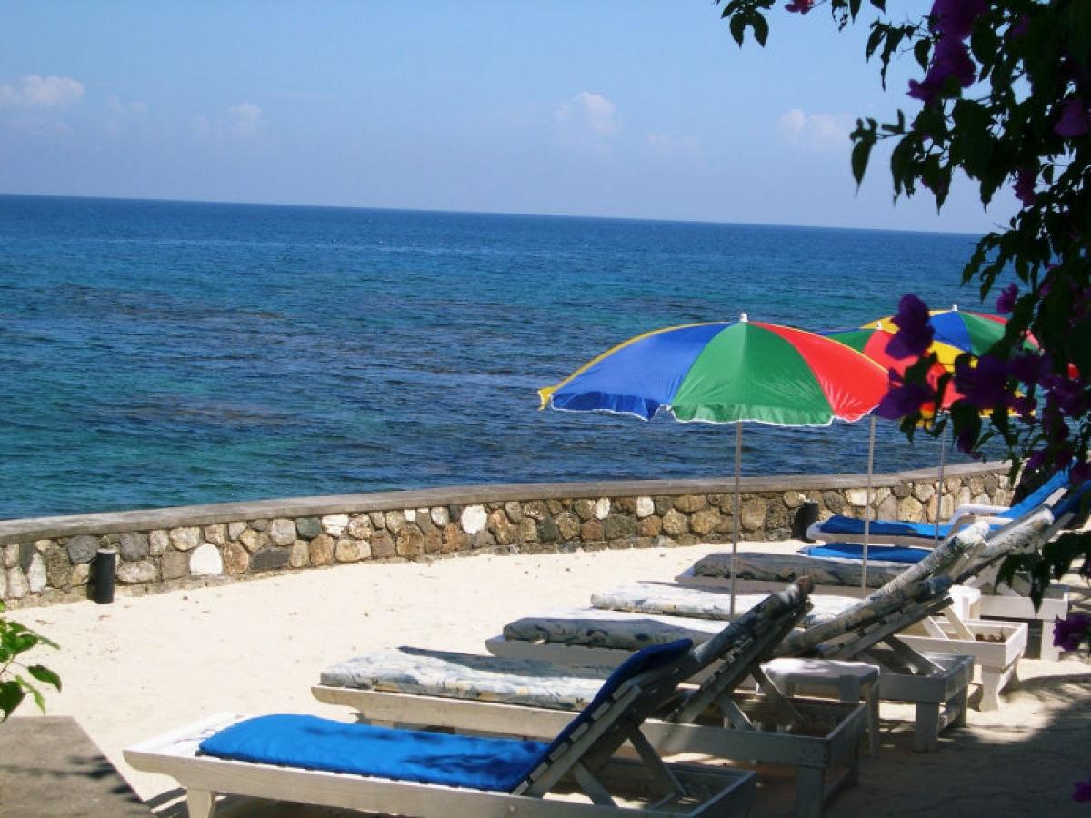 Golden Clouds villa is a luxurious 9 suite estate situated in a park like, 6 acre setting. It is a spectacular oceanfront villa located on Jamaica's fabled North Coast in the picturesque village of Oracabessa. Located a fifteen minute drive from Ocho Rios, the villa overlooks a private palm fringed, white sand beach and the Caribbean Sea. Surrounded by manicured lawns and gardens, the property consists of a main villa with 7 suites and a garden villa with an additional 2 suites and its own kitchen and living area. Each building has a large veranda and its own swimming pool. Golden Clouds is situated between the Golden Eye Resort where Ian Fleming wrote many of the James Bond novels and Noel Coward's "Firefly". The villa consists of 6 landscaped acres of tropical beauty and 700 feet of oceanfront with it's own private white sand beach. From the beach, step into the Caribbean Sea and enjoy the many wonders of snorkeling right in front of the villa or relax on the ocean dock anchored a few feet from the beach. With an 80% return rate for guests, Golden Clouds is recognized as one of the top villas in Jamaica. It is renowned for its excellent service staff, luxurious accommodations, superb and varied kitchen skills, and preserving the simple island beauty in its natural state. This 5 star, private villa is available for your pleasure, retreat, reunion, or getaway. It is perfect for families on holiday, weddings, or reunions, a business workshop or incentive trip, private retreats, or whatever you may need. The relaxing environment and amenities offered can be your home away from home in a tropical paradise.