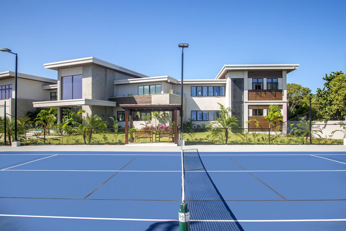 Guests can walk done the seaside jetty to a covered ocean side gazebo with comfortable seating, a bar, and a sundeck. In the front of this luxury villa, there is a full tennis court that is lit for nighttime games, a fully equipped air-conditioned gym, and a large lawn.