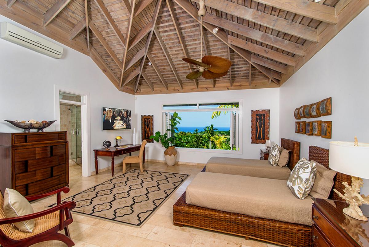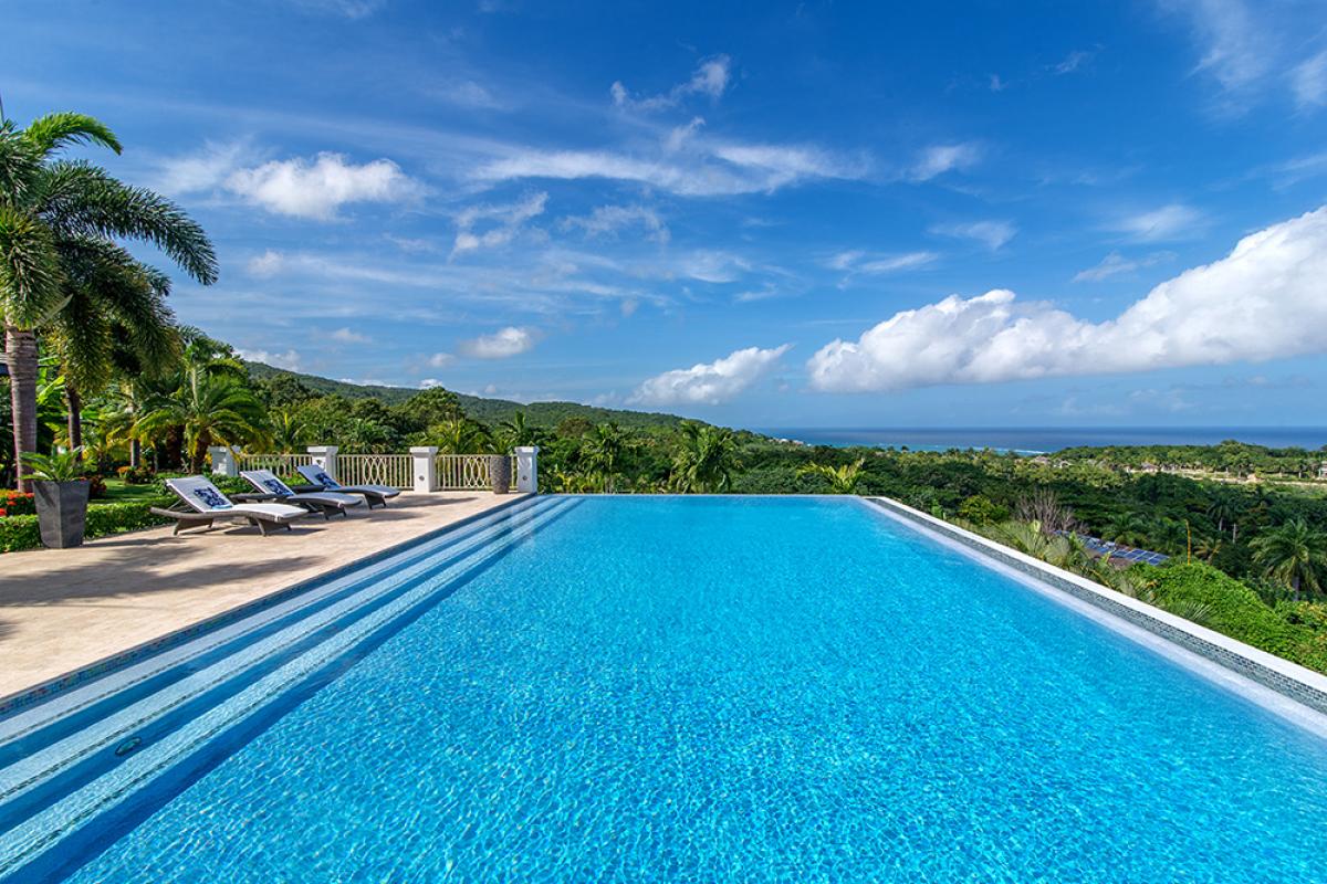 One of the newest Premier villas in the Tryall Club, Harmony Hill is a very private luxury villa offering the finest in Caribbean living. Its design combines traditional Jamaican architecture with modern amenities and excellent service. Textures of Travertine and marble enrich the interiors. Dramatically located 350 feet above sea level, the villa is notable for its breathtaking views over the 2,200-acre manicured golf course and the Caribbean Sea.