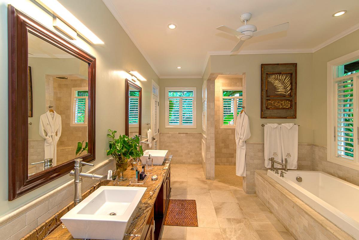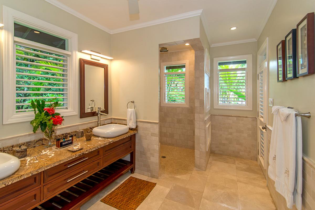 Bedroom 2: King bed, walk-in closet, en suite bathroom with double vanity, vessel sinks and walk-in shower, private patio, ocean view