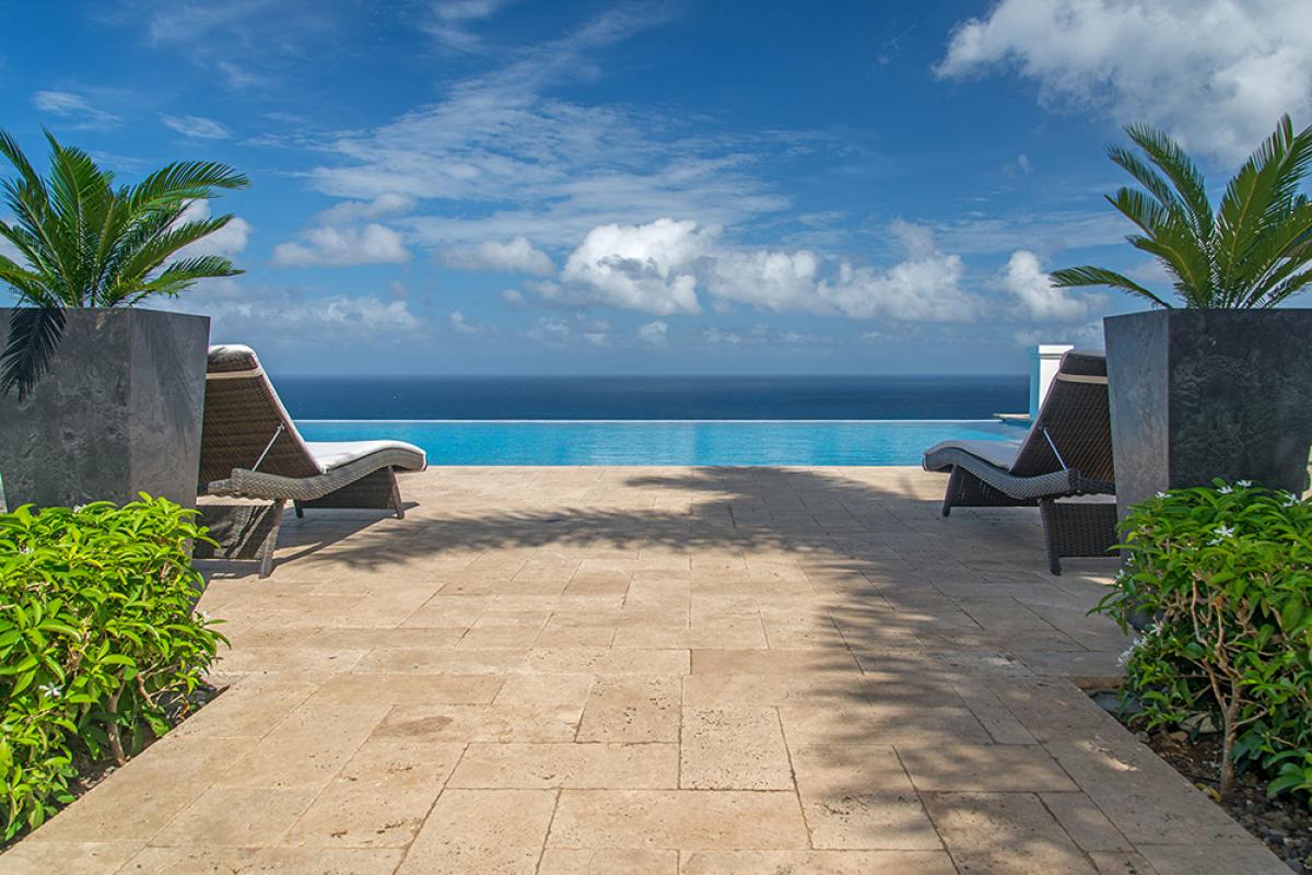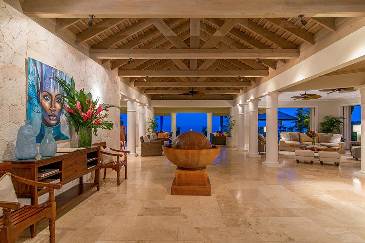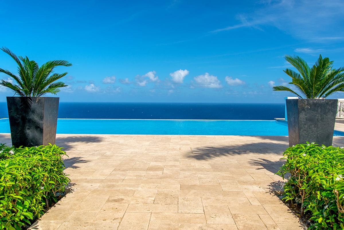 As guests enter the main pavilion, the view down the marble concourse seems to merge the infinitypool with the blue hues of the Caribbean Sea and sky. This view is simply amazing.