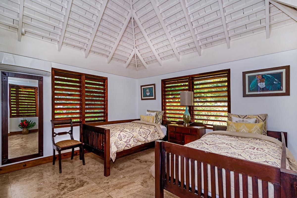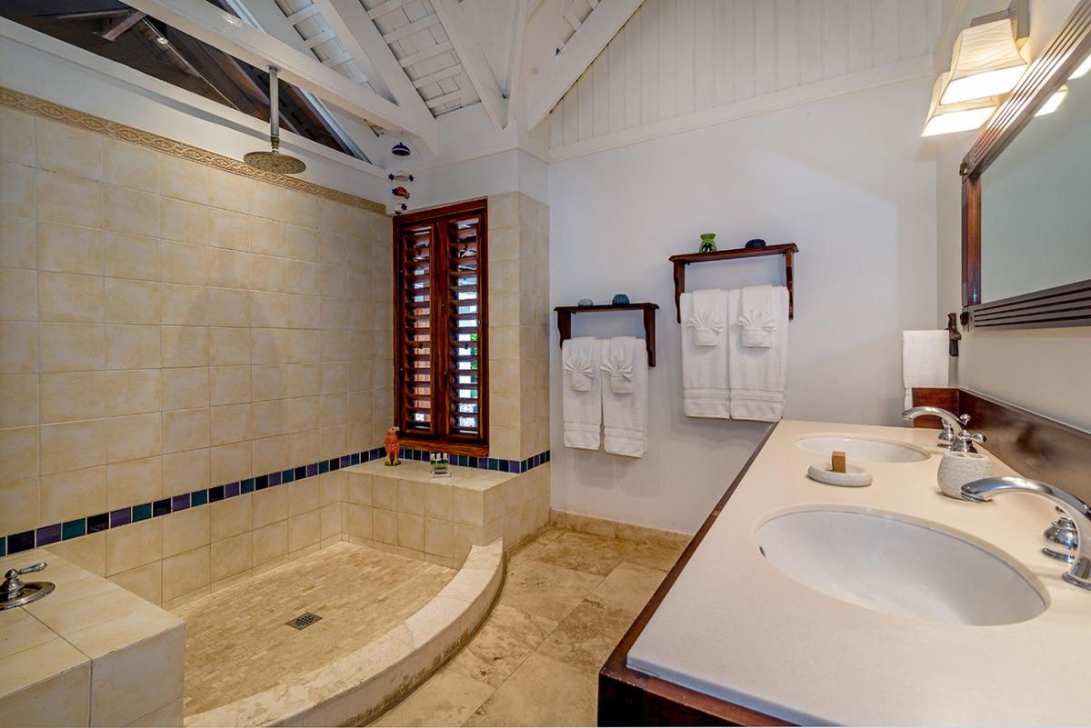 Bedroom 4: King bed (can be converted to two twin beds), en suite bathroom with waterfall shower, AC, ceiling fan, TV, iPod dock, safe