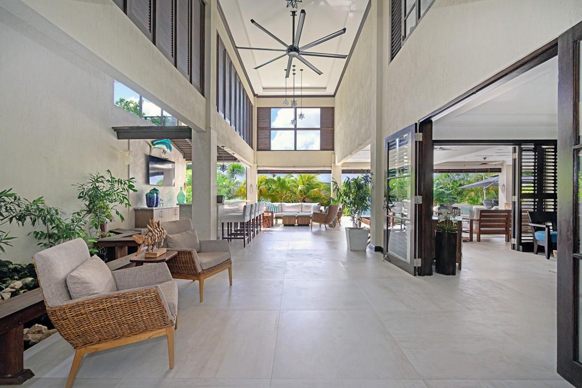 Interiors are stylish and comfortable. The Great Room with water feature and fish around entrance and in atrium... opens to a spacious verandah and bar. Home-cooked meals are served on the verandah or gazebo overlooking the lawn, garden, private pool, beach and blue bay.