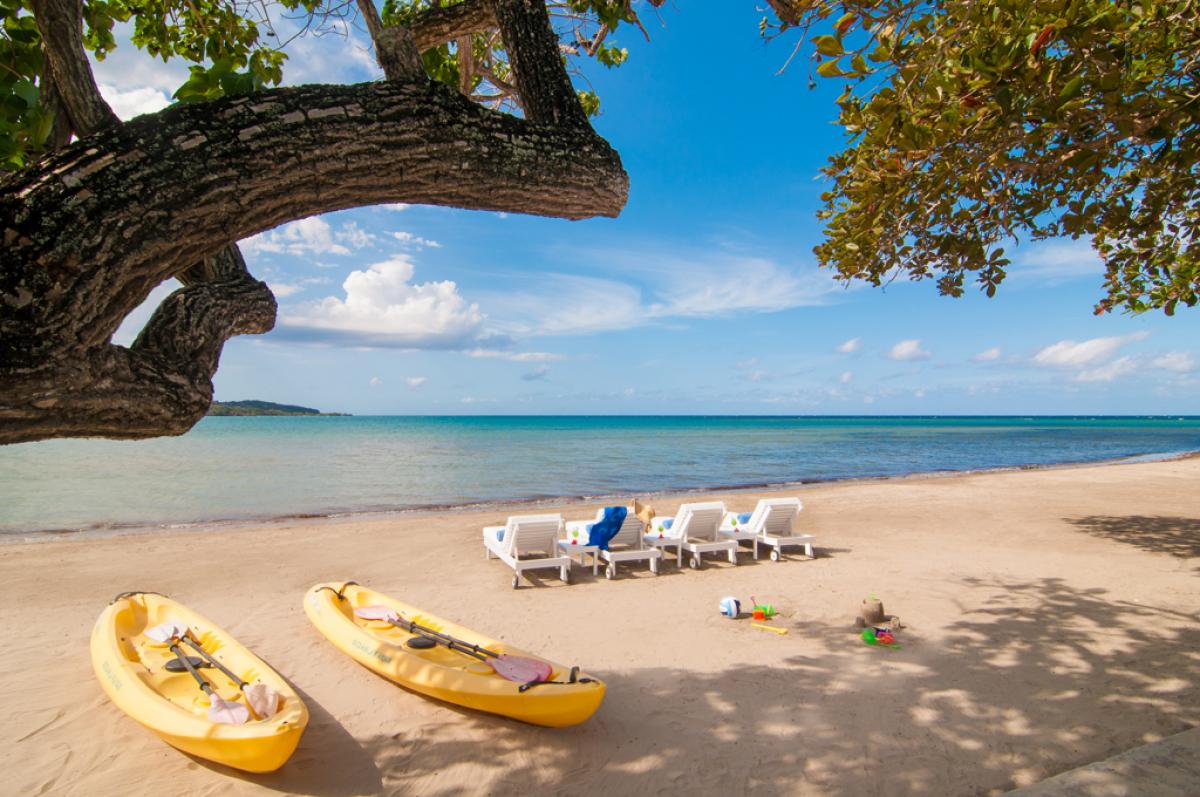100 yards offshore is Holden's Reef, a continuation of the barrier reef complex that fronts much of Jamaica's north coast. Easily reachable by kayak, this live reef is home to a myriad of tropical fish and corals. At low tide, portions protrude above the water so you can step from your kayak to snorkel in shallow water. On the ocean side, deeper waters beckon the more adventurous or scuba equipped.