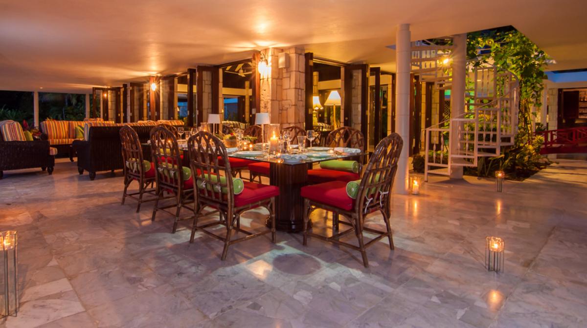 Meals here merit special attention. The excellent Noble House Chef Jerome brings a strong culinary background to the table, enhanced by artful presentations. In addition to North American, Jamaican and Continental expertise, Jerome is experienced in handling all Kosher requirements. Breakfasts cooked to order are served on the main verandah overlooking the groomed gardens and sea just beyond. Lunches are served by the pool or beach or on the shaded verandah. Dinners for special celebrations can be served in the formal dining room under an elegant crystal chandelier, less formally on the open-air verandah or barefoot at a picnic table on the beach at the waters edge.