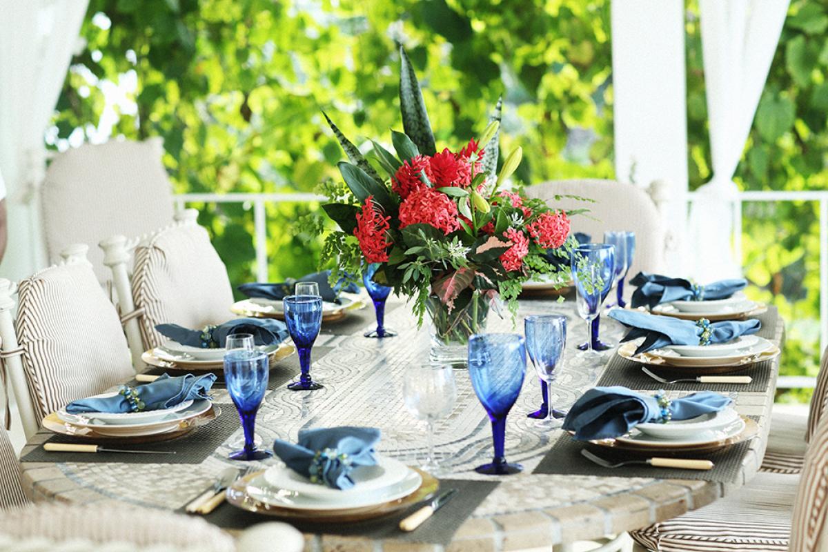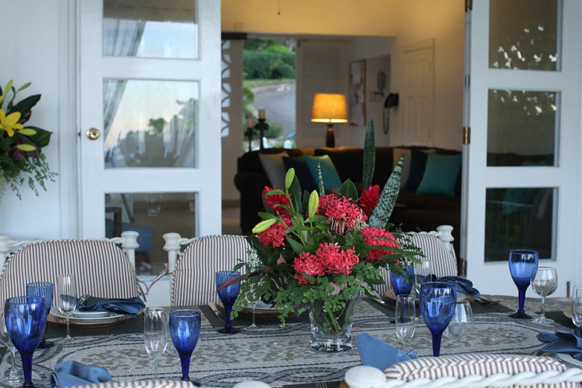 Adjoining the verandah is the covered al fresco dining terrace for delicious meals prepared by the Nutmeg cook. Lunches are served on the dining verandah or at shaded poolside umbrella tables.