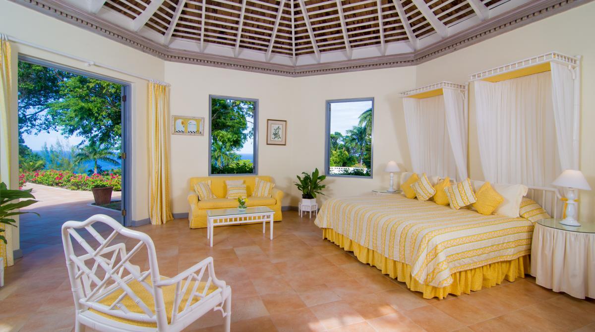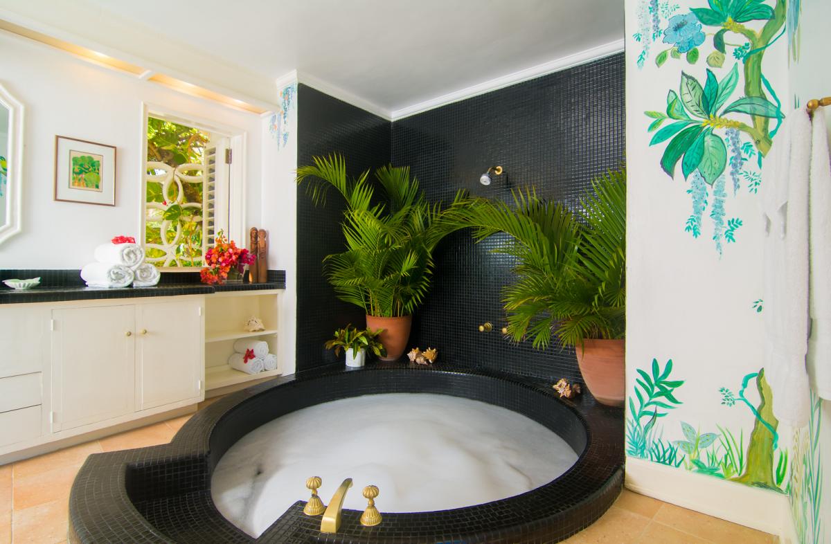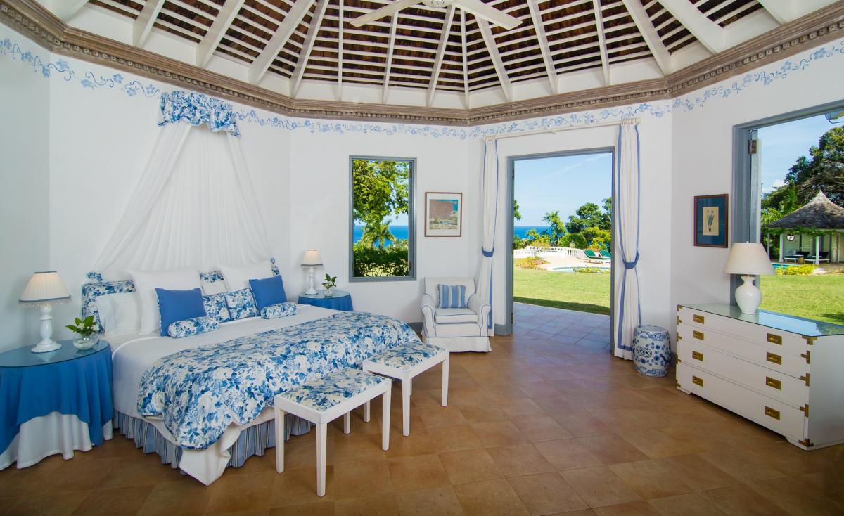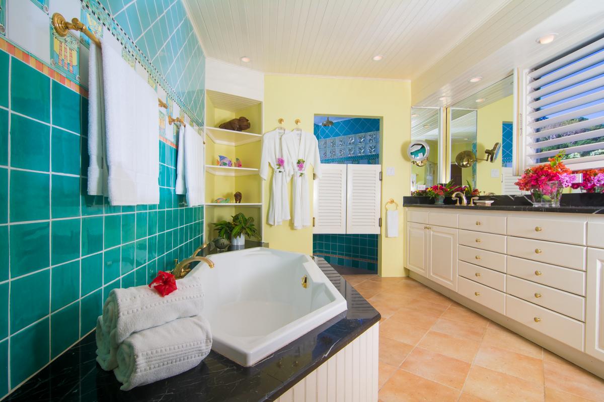 Bedroom 4: King bed (can be converted to two twin beds), en suite bathroom with bidet and sunken tub, hairdryer, dressing room, connected to bedroom 1, ocean view