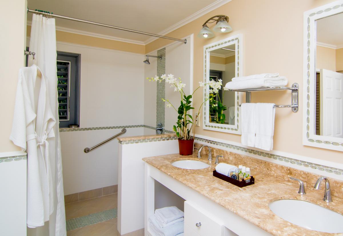 Bedroom 5: King bed (can be converted to two twin beds), en suite bathroom with shower and tub, double vanities, hairdryer, changing area, 42" Phillips TV, DVD, CD player, surround sound, ocean view