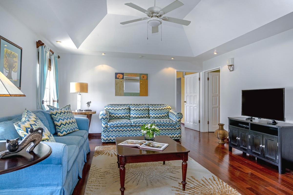 Interiors at Sweet Spot are brightly furnished and cheerful. French doors open wide to the lovely sea view. All bedrooms are air conditioned and have flat screen TVs. However, you may wish to leave your doors open at night to hear the waves lapping on the beach. The DSS satellite system offers news, sports, movies, family and children's programming plus several music stations.