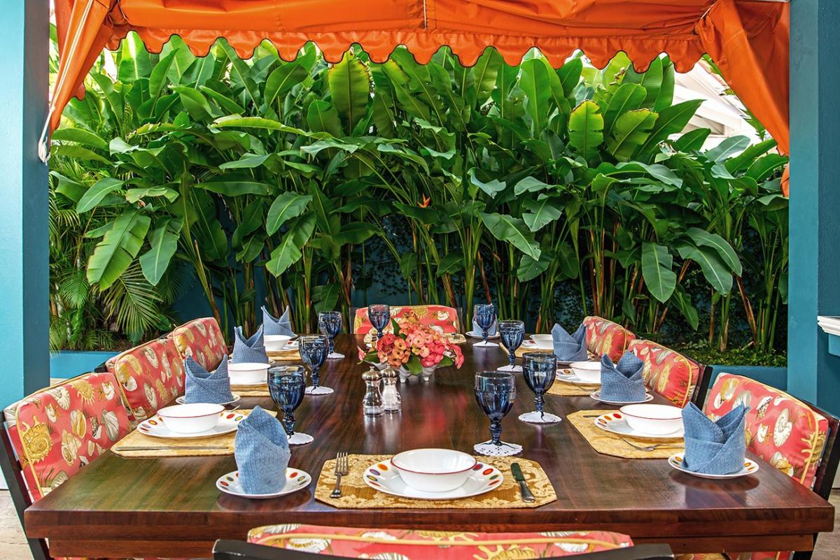 The large lawn is trimmed in colorful hibiscus, bougainvillea, shrimp flowers, oleander, banana trees and stately coconut palms. The lawn is a great playground for badminton, croquet and volleyball ... or merely napping in the hammock in the shade of the beautiful Cassia Fistula tree with its beautiful cascading bunches of yellow flowers.