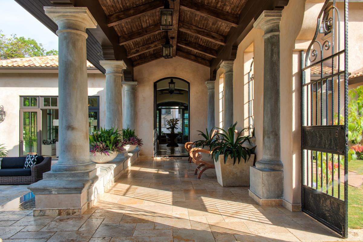 Villa Christina offers five luxury bedroom suites featuring stunning views of the Caribbean Sea and mountains beyond. This villa boasts entertainment areas include a billiards room with wet bar and 8-foot pool table, wellness center inclusive of a spa, exercise room, and steam room, two Jacuzzis, a heated salt-water affinity pool, TV lounge and entertainment area, covered terrace, and romantic lookout tower.