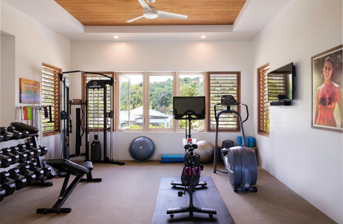 Bedroom 4: This room is equipped with a king-sized bed, air conditioning, a ceiling fan, black-out curtains, a smart TV, a personal safe, and an ensuite bathroom with double vanities and a walk-in shower.