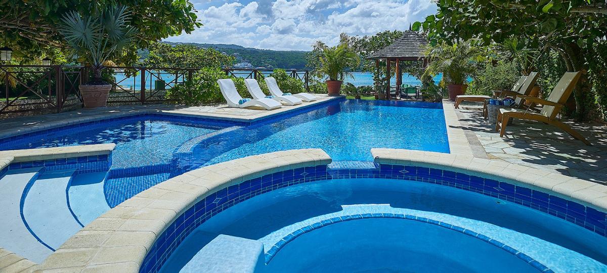 Located side by side, these neighboring villas combine to offer 13 bedrooms, 2 swimming pools, 2 private beaches, 2 air-conditioned gymsand 2 tennis courts lit for night play. Each villa has its own private coral cove and sandy beach. Both villas overlook one of Jamaicas loveliest crystal clear bodies of water, Discovery Bay. They can be rented alone, together or in combination with any other neighboring villa(s) along the Discovery Bay strip.