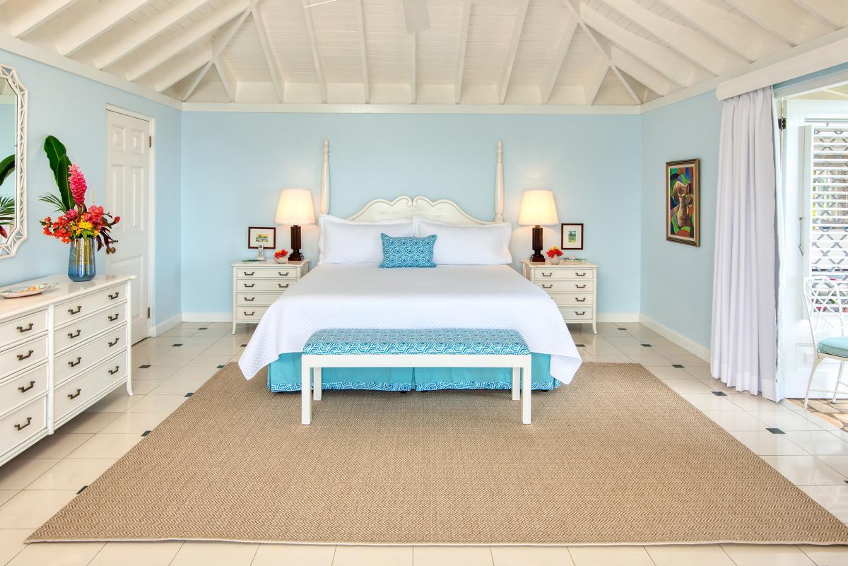 Bedroom 3: This room is equipped with the option of a king-sized bed or two twin-sized beds, a radio player, french doors to a private balcony with an ocean view, and an ensuite bathroom with a tub-shower.
