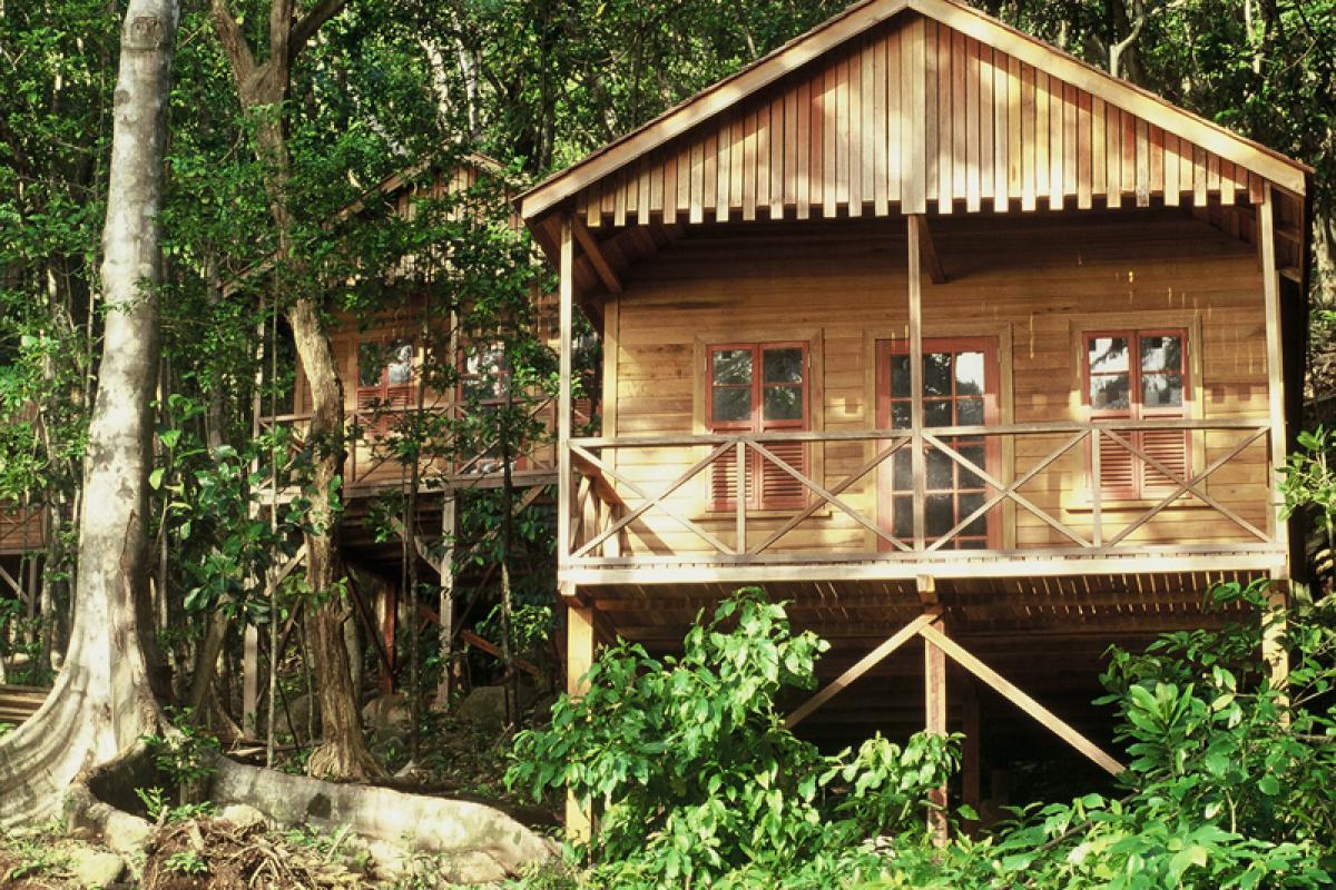 The island of Dominica, set between Martinique and Guadeloupe, is the Caribbean in its purest form and Jungle Bay Resort and Spa captures that sense of the wilderness. On this island with lush green forest covered mountains, towering palms, beautiful flowers, home of rare species of parrots and orchids, dramatic waterfalls, and hot springs and rivers, guests feel as if they are walking in Eden. Jungle Bay Resort and Spa is bordering the Atlantic Ocean and Morne Trois Pitons National Park, a UNESCO World Heritage site. The award winning Jungle Bay Resort and Spa is known as an eco-luxury property, retaining the comforts and high standard of service to guests, while operating in a sustainable way. The property is located on 55 acres of lush tropical jungle ready to be explored. Plenty of excursions, lots of adventure, on site activities, and the opportunity to relax and rejuvenate are offered by the Jungle Bay Resort and Spa every day. Enjoy the privacy of the spacious, rustic, yet comfortable and luxurious cottages with wonderful rainforest views. The facilities were designed with the natural environment in mind. Guests have to be prepared for walking, as some cottages are located up to 200 steps away from the main path. The cottages at Jungle Bay Resort and Spa are unique Caribbean accommodations. 35 tastefully furnished tropical hardwood cottages are elevated on wooden posts, nestled beneath the undisturbed jungle of Dominica. The cottages at Jungle Bay Resort and Spa are spacious and feature wood furnishings all designed and built at Jungle Bay Resort and Spa. They are perched like birds nests, tucked away on a hillside between Cedar, Gomier, and Galba trees. Special care was taken to preserve the forest in its original form. Cottages at Jungle Bay Resort are accessed through a series of footpaths and stone staircases. The low impact night lighting along with the sound of the Atlantic surf creates a romantic, surreal ambiance.