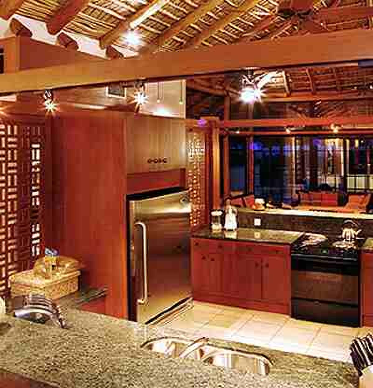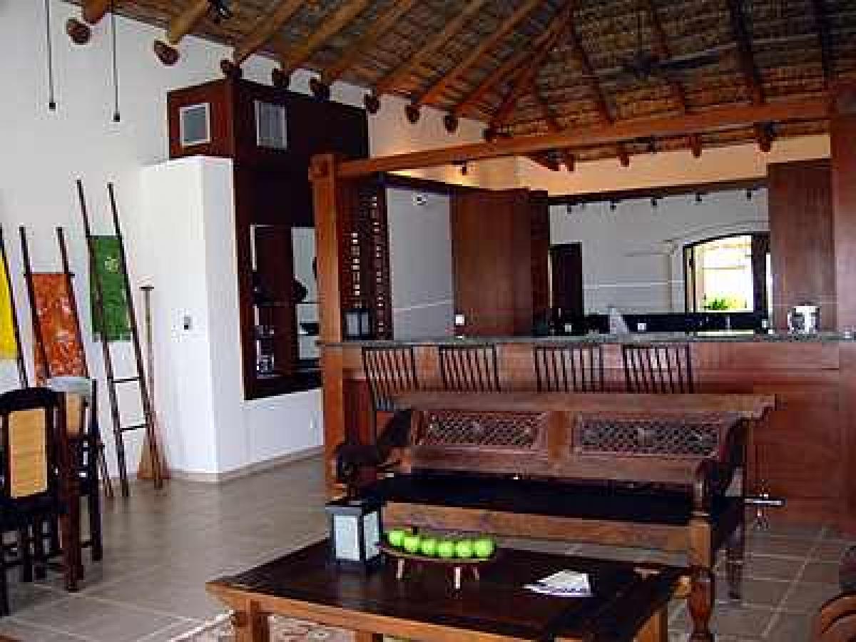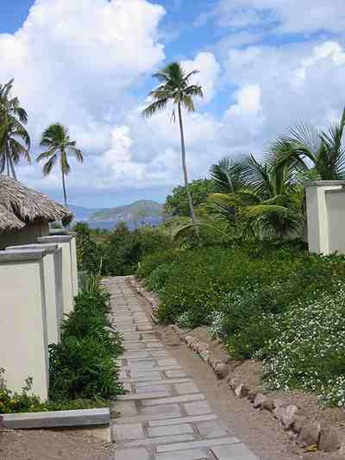 Entirely hand crafted, Villa 5 features Italian tile floors throughout, marble bathrooms, and hand woven roofs with hand carved timbers. It is fully air-conditioned, just steps away from Nevis' extraordinary beachfront. The hand hewn doors of the perimeter walls open onto a private courtyard and the double doored entry to the villa. With soaring hand woven roofs and views to the Caribbean Sea, you will thoroughly enjoy the breathtaking beauty of this villa.