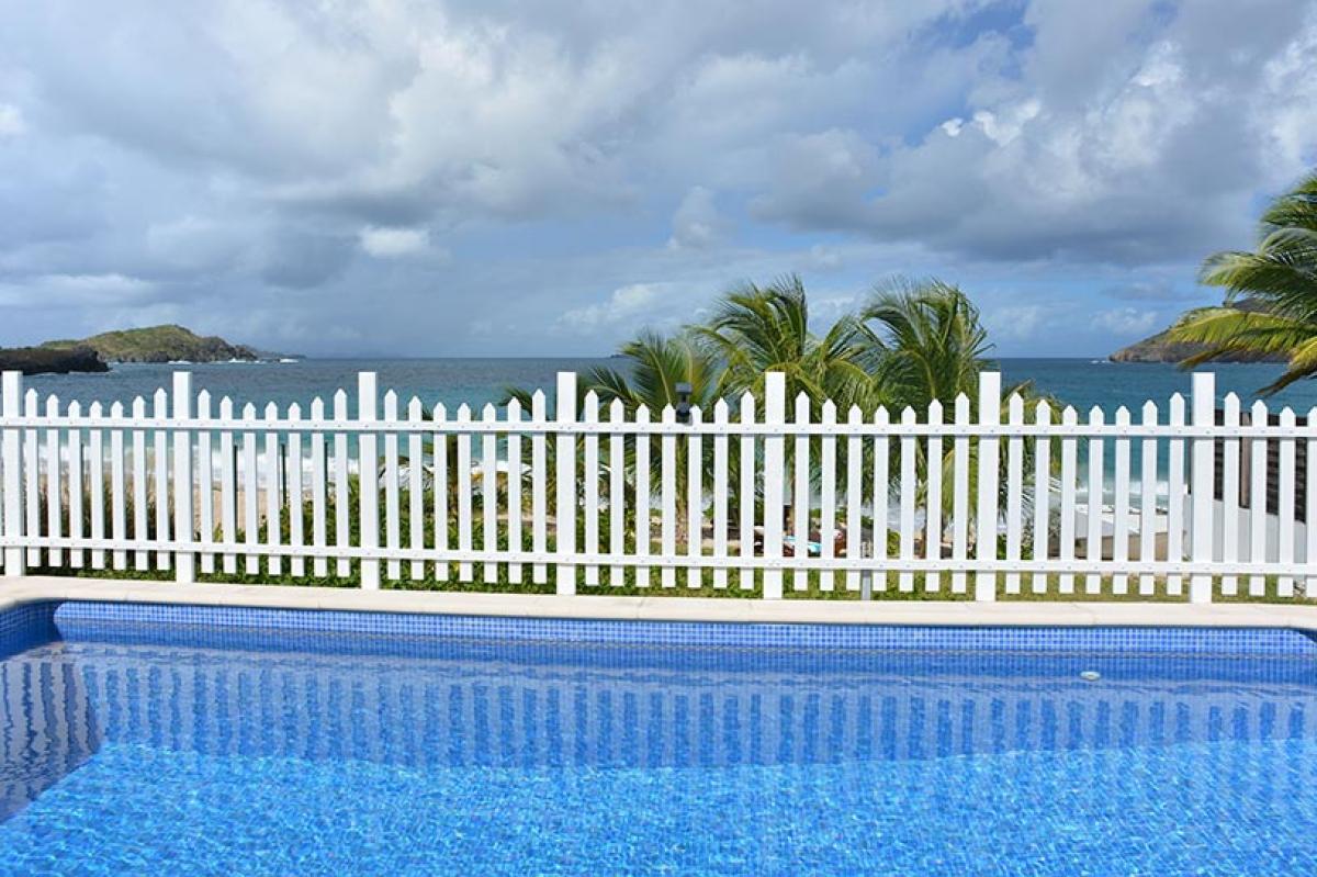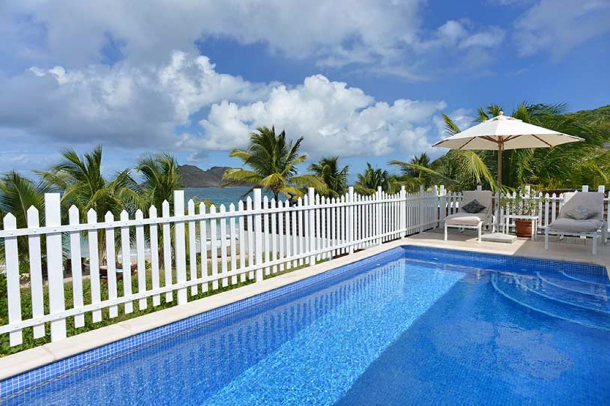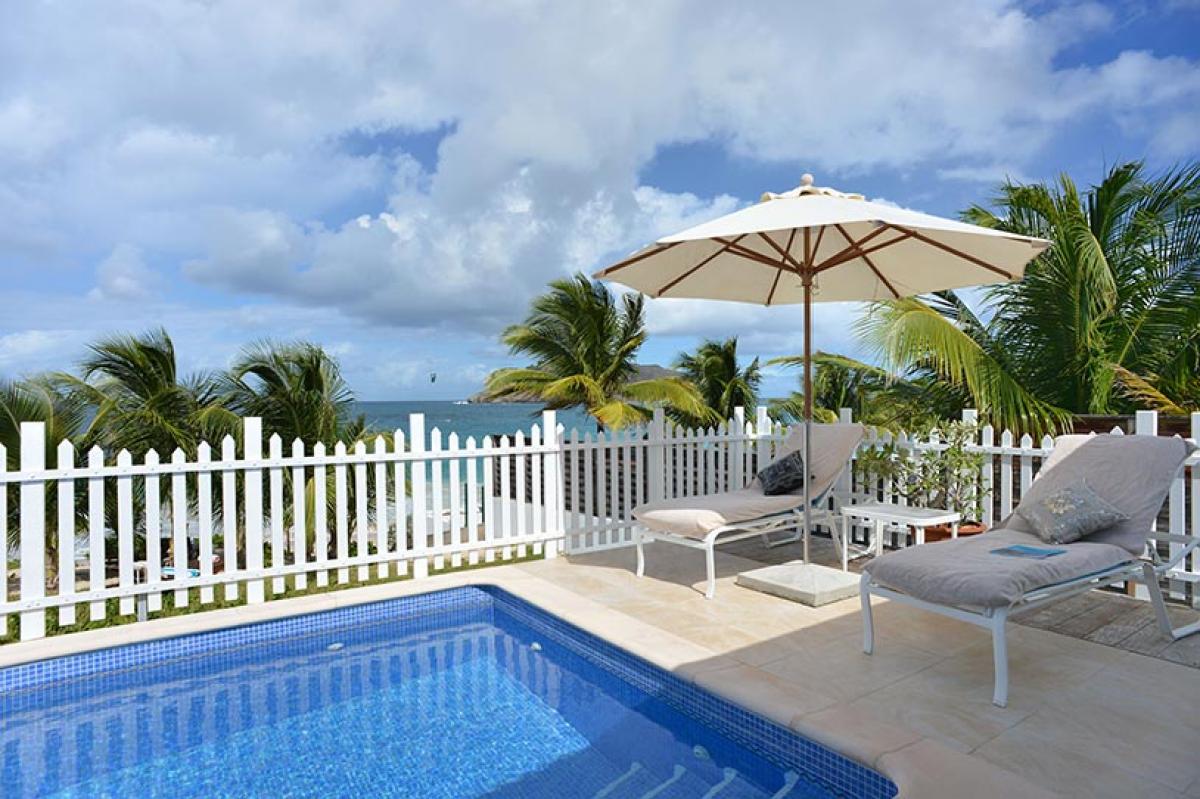 Celina is a beautiful two bedroom, beachfront villa with an open floor plan and gorgeous views of Flamands Beach. The private pool overlooks the ocean, the lush tropical landscaping and the coconut trees beautifully swaying in the breeze. Truly a peaceful and relaxing outdoor setting.