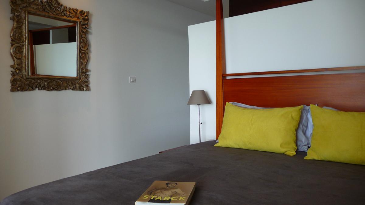 Bedroom 1: king size bed, ensuite bathroom, air conditioning, fan, mosquito net, safe, TV, French satellite, and DVD. There is a large dressing room, outdoor shower and ocean views.