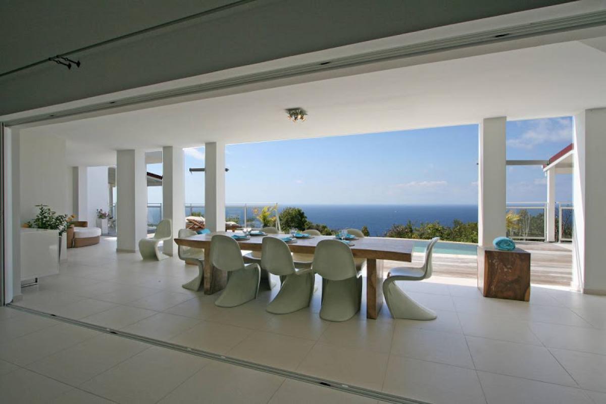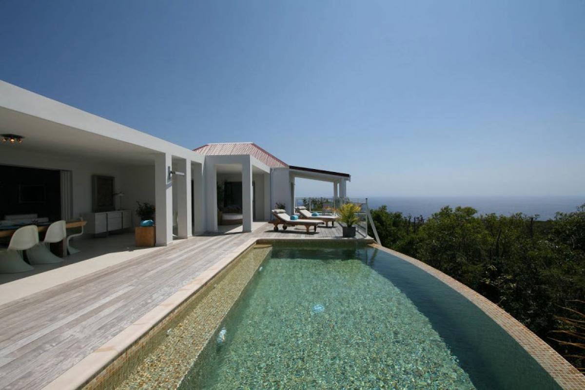 Villa Azur is a gorgeous 3 bedroom, 3 bathroom property with some of the most amazing views. You will be stunned by the beautiful ocean vistas and all the islands you will see from the sundeck of this vacation home. The interior is a contemporary design with a luxurious white leather sofa in the living area, gourmet kitchen and bar. There is modern decor throughout the rest of the home. The outside is equally stunning with the infinity edge pool, sundeck and al fresco covered dining area. This vacation home is ideal for families or couples traveling together. Villa Azur has everything you need for your next holiday getaway. It is just minutes away from the restaurants and shopping in Gustavia. It is also very close to the beautiful Gouverneur Beach.