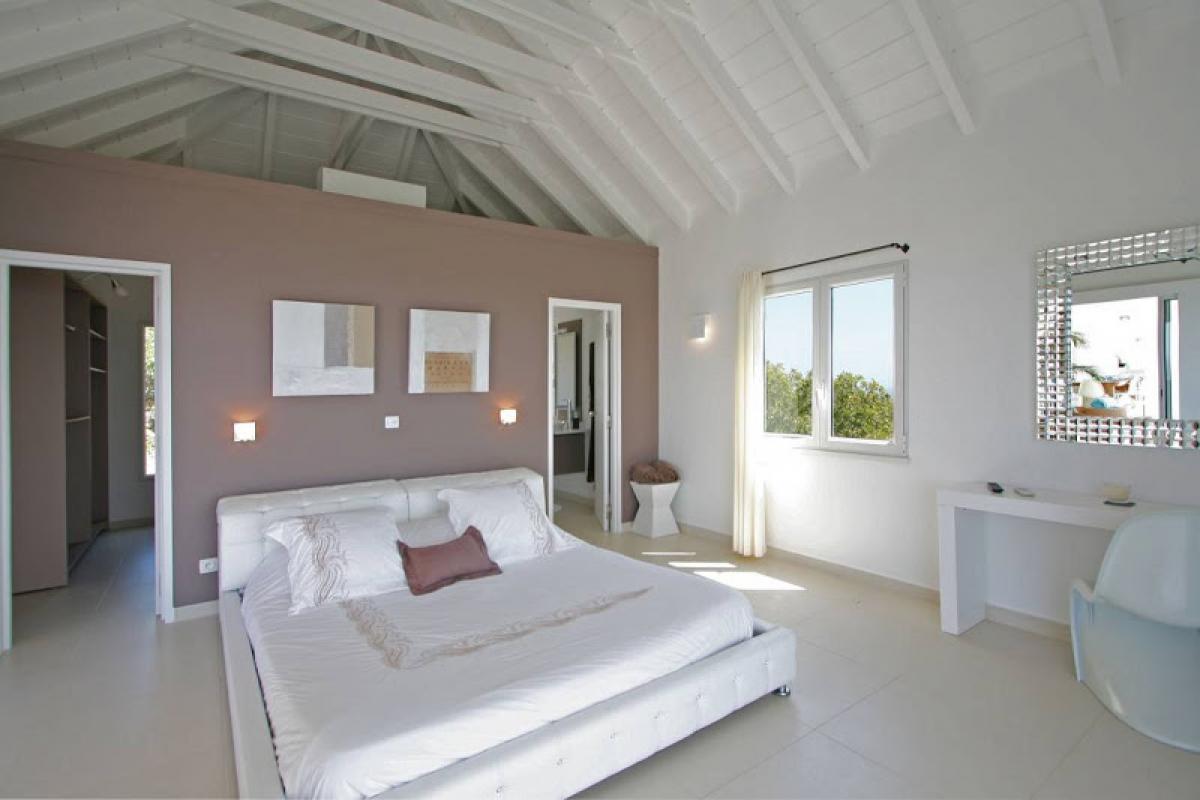 Bedroom 3: white leather French king size bed, ensuite bathroom with shower, access to a terrace that adjoins the pool and a plasma TV All the bedrooms offer privacy although two do connect through a walk in closet.