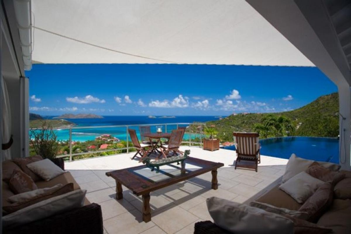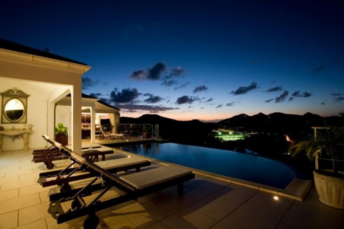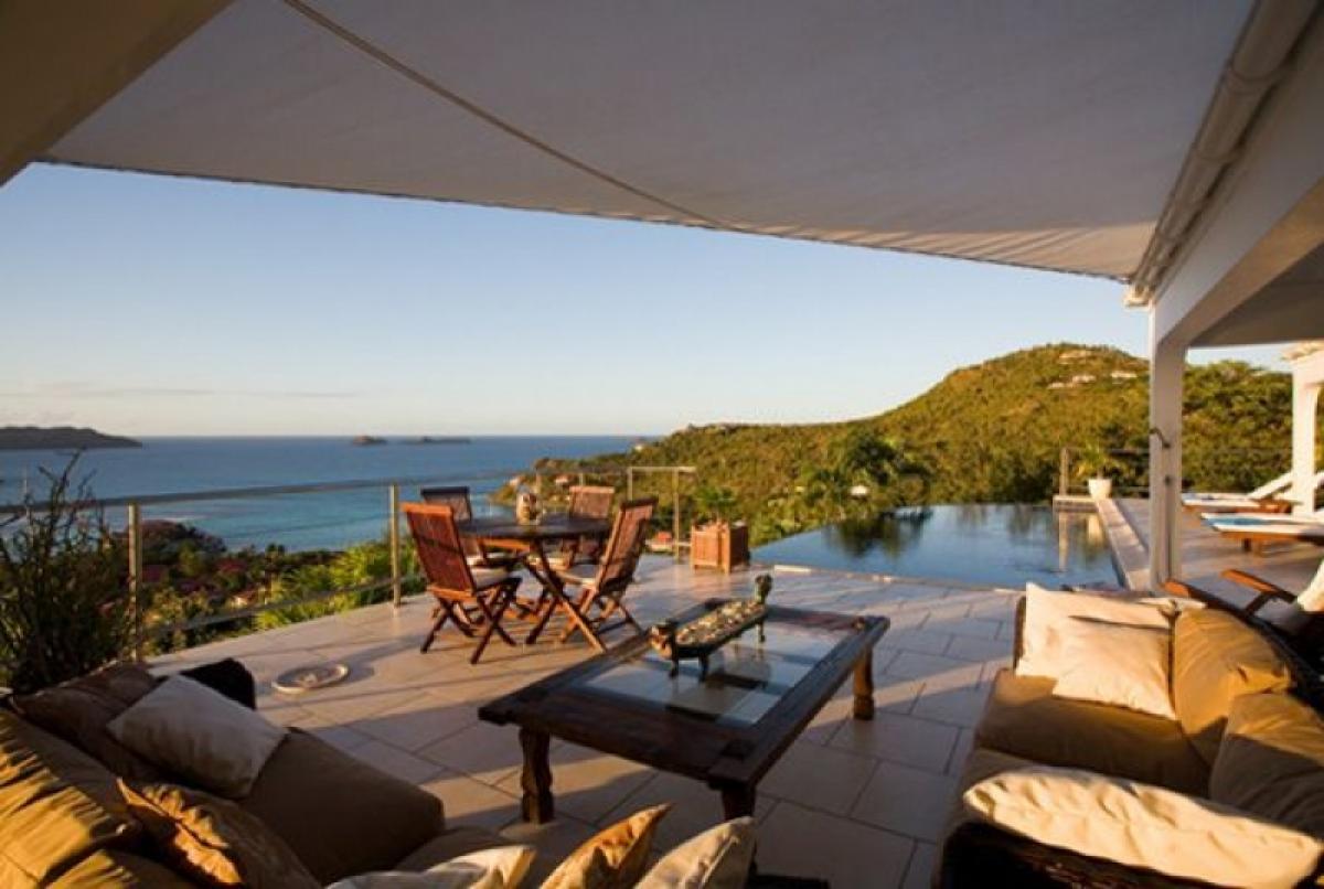 Villa Mystique has breathtaking views over the bay of St Jean. The villa has five spacious bedrooms, each with a private bathroom. The beach is only a five minute walk. There is a large terrace with a sitting area and a nice semi-outdoor lounge. The garden is tropical and several birds visit you for breakfast in the morning. The navy blue infinity pool melts in the decor. Have a larger group? Villa Sunrise can also be rented for a total of 9 bedrooms.