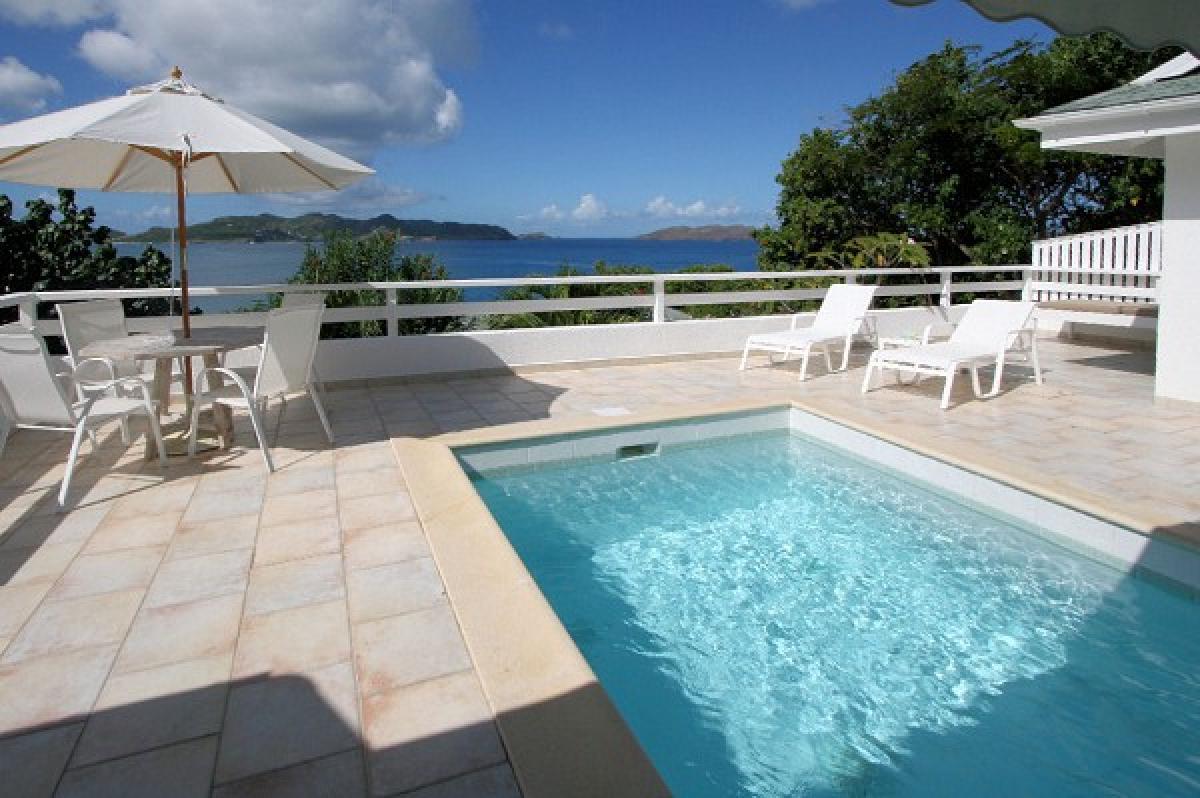 Welcome to Villa Papillon Blanc, Villa of the White Butterfly. Tucked into the hillside of beautiful Pointe Milou, the villa overlooks Baie St. Jean, Baie de Lorient, and Anse de Cayes, with views beyond to the mountains of St. Maarten. There are 2 bedrooms, each with a queen bed and an en suite bath. Secure high speed WiFi internet service is available throughout. The spacious salon is an open common area for relaxing, dining, and swimming in the private 9' x 14' plunge pool. The salon is westward facing and offers stunning sunsets, views of the St. Barths mountainsides and St. Maarten, 15 miles to the northwest. Villa Papillon Blanc offers a truly million dollar view at an affordable price. St. Barths is known for its fine dining, but if you'd rather make your own gourmet meals, there is a newly renovated, fully equipped kitchen. We want you to relax and have as much fun during your stay as we do. This is why we have paid careful attention to detail, offering clean, tasteful, and comfortable surroundings and many added amenities for a superb vacation.