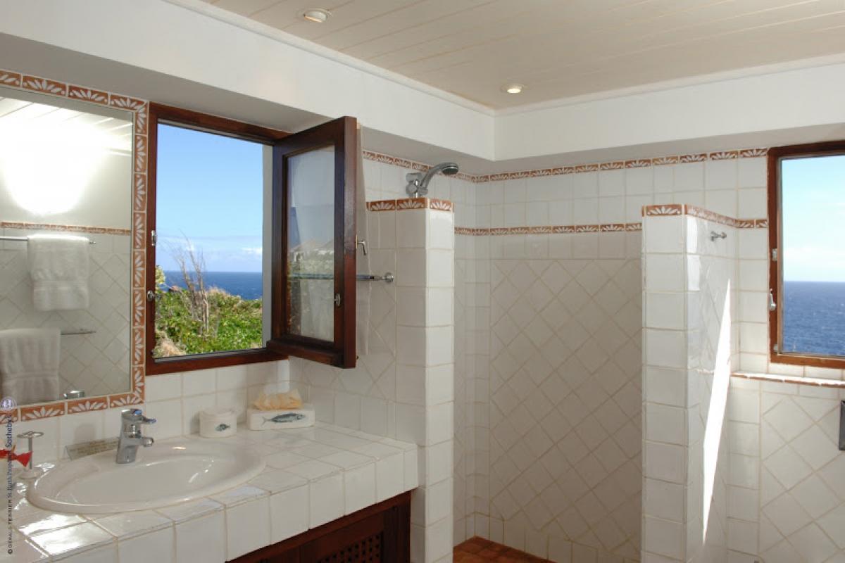 Villa Samar is a beautiful 5 bedroom, 5.5 bathroom cliffside property that offers magnificent ocean views. Set high above Petit Cul de Sac and in a gated community, this villa has all the privacy you are looking for. The Italian influence can be seen in the design and decor of the home. There is a nice size living area, a well equipped kitchen, and the outdoor living areas offer al fresco dining and a private pool. Relax outside on one of the terraces. There is plenty of sun and shade depending on your preference. The patio has a wood fired pizza oven for you to enjoy. Villa Samar is beautifully landscaped. You will enjoy taking in the views of both the ocean and the gardens.