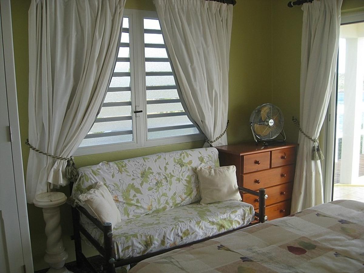 Wake up and open three sets of sliding glass doors to an ocean sun rise. Enjoy breakfast on one of the two covered, outdoor dining areas. Walk to your own private beach or enjoy one of the many hiking trails only steps away from Villa Toiny. Swim in the ocean or cool off in your private heated fresh water pool. Nap on the deck listening to the waves of the ocean. End your day with a romantic, outdoor, candlelit dinner at Villa Toiny followed by star gazing, and watching the moons reflection on the ocean. The master bedroom at Villa Toiny includes glass patio doors with full ocean view. The attached guest bedroom has a separate entry, glass patio doors with a full ocean view and a full bathroom.