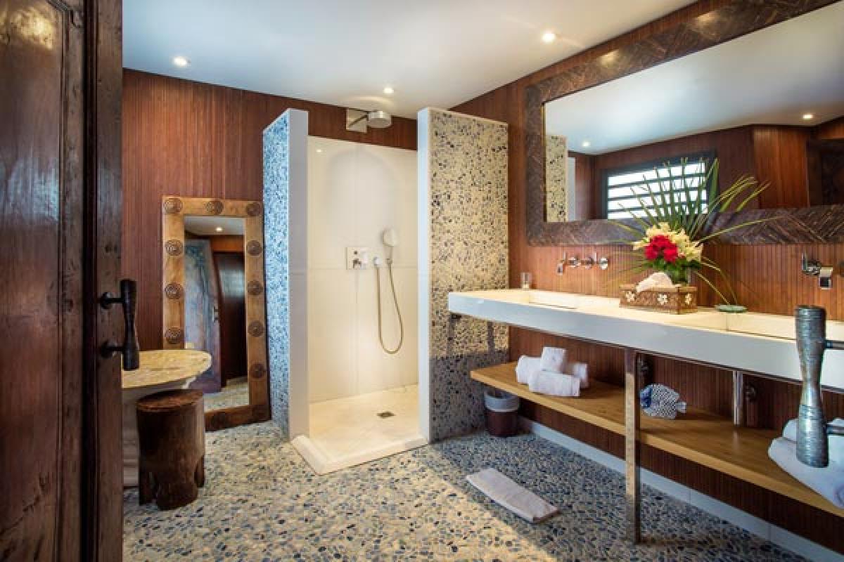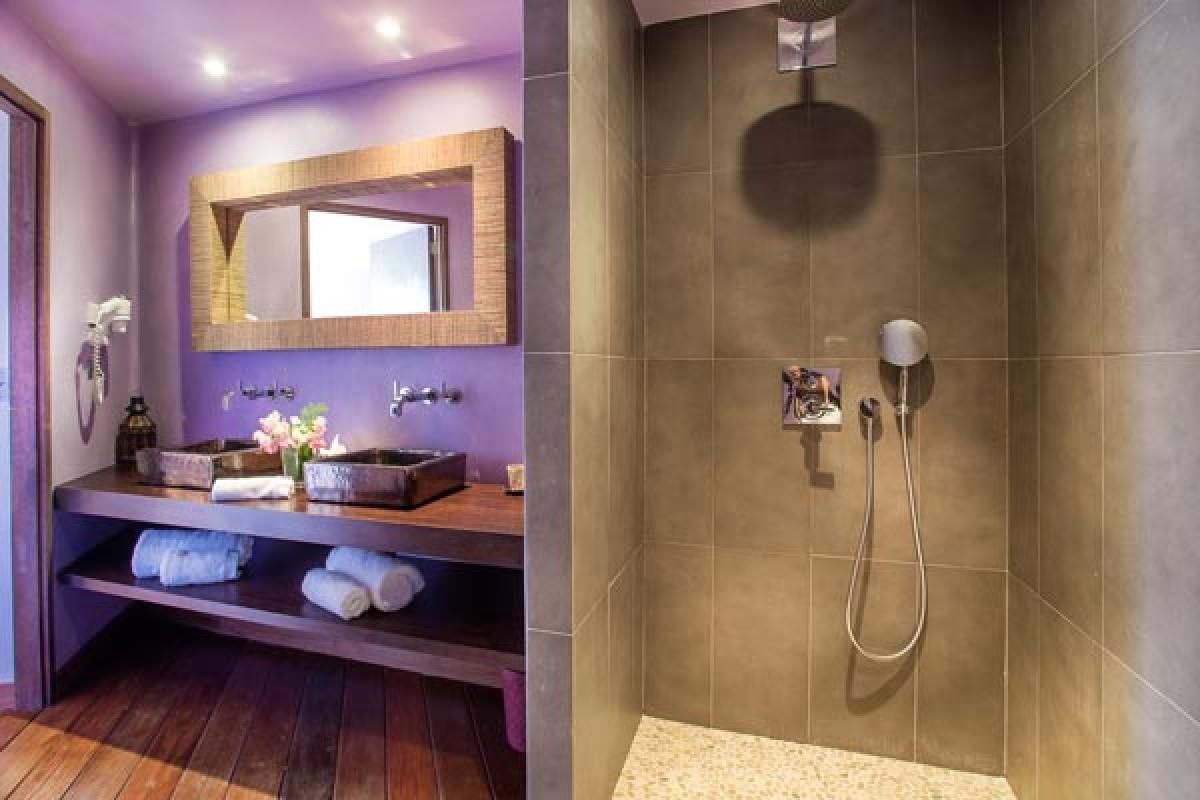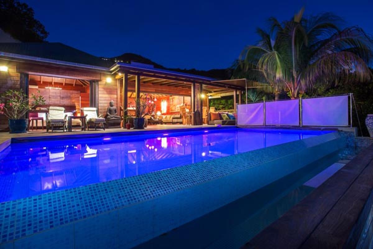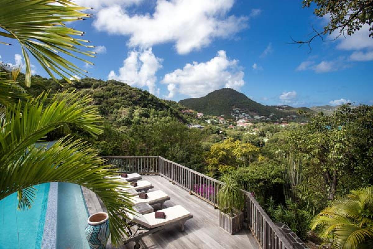 From a quiet road, through an electric gate to a private parking area, the gate closes and you have arrived at Villa Veronika. On the hillside of Camaruche, this lovely St Barts villa rental offers a fantastic view over Lorient Bay while enjoying breathtaking sunsets year round. Decor & furnishings in a refined Balinese style, the antique furniture, art and accessories were collected from the various trips of the owners and has the exotic feeling of an Asian house.