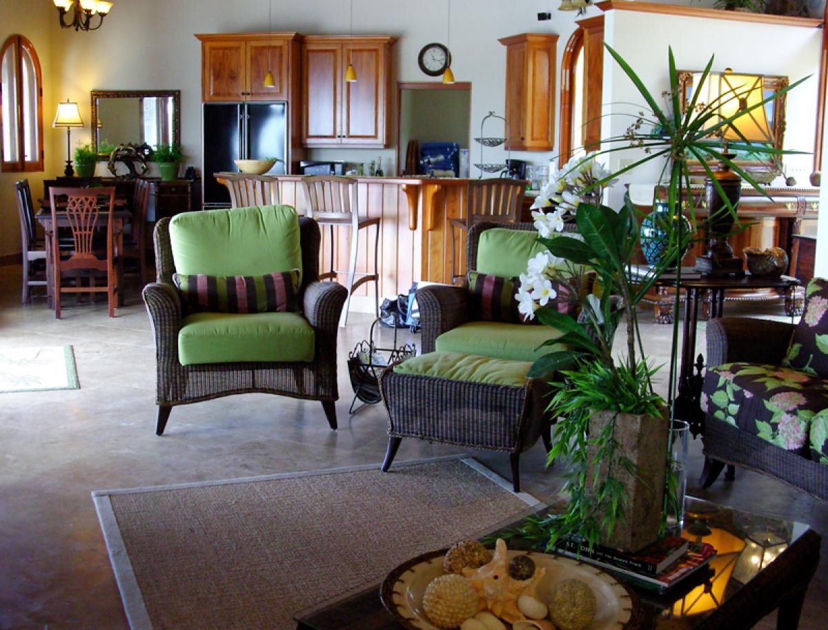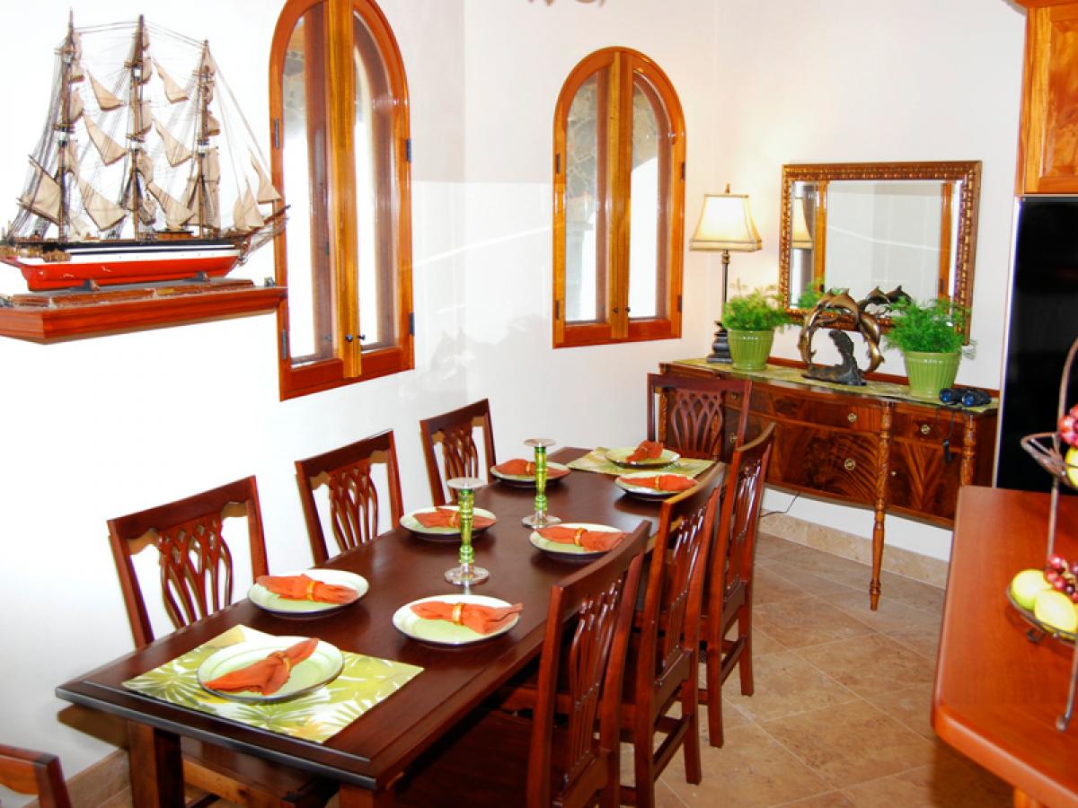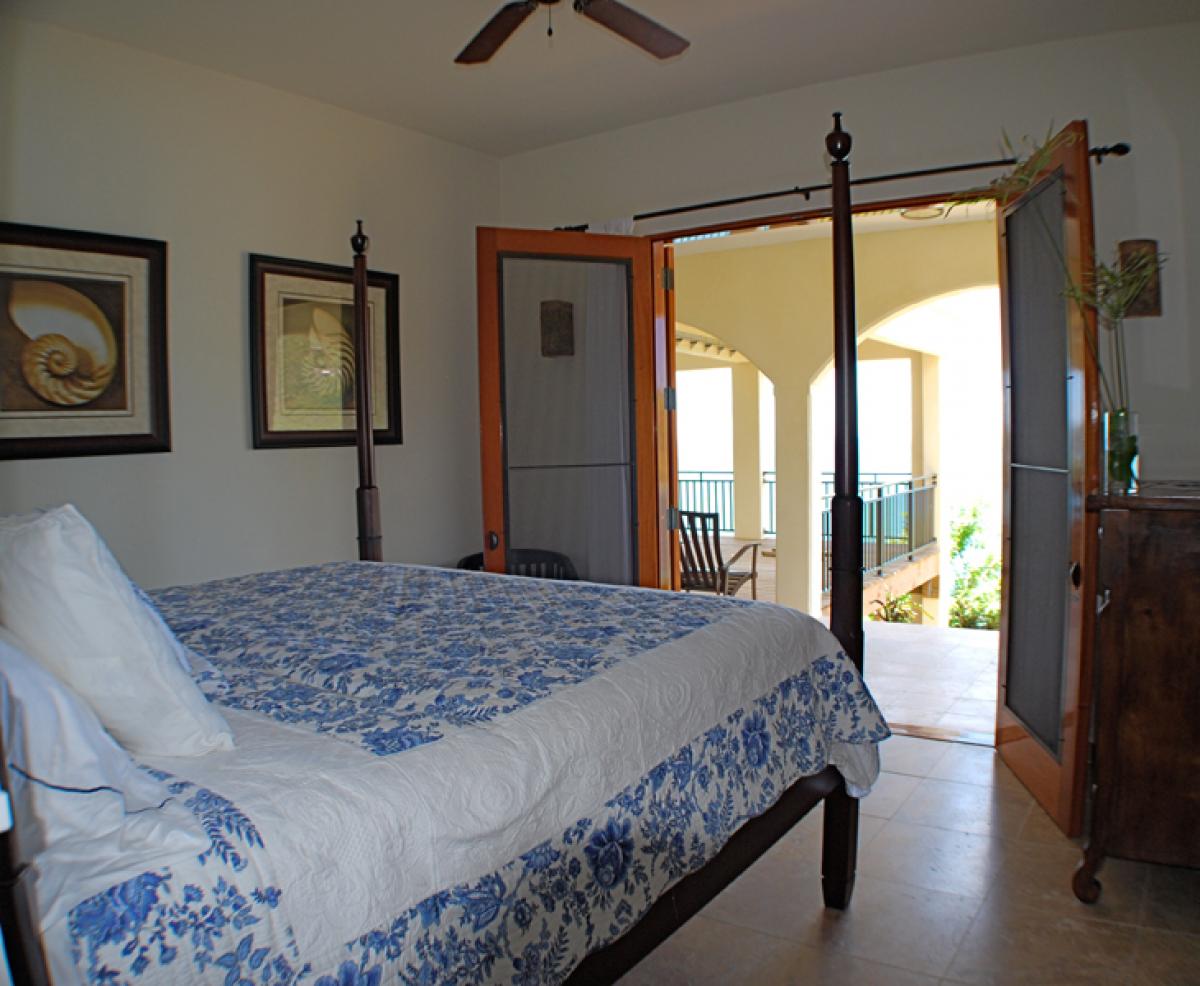 Estate Fortsberg has a very special and extremely private location on the beautiful island of St. John. Located on a private promontory of land within the National Park boundaries, overlooking Hurricane Hole and Coral Bay, it sits at an elevation of 260’ on historic Fortsberg Mountain. The home encompasses 270 degree views with every window offering a breathtaking delight to the eye. Early risers will be delighted by the gorgeous sunrises to the east. In the evening of the full moon phase, Estate Fortsberg affords phenomenal views of the moonrise. One can look northward to the towering island of Tortola and southeast to distant Norman Island. Estate Fortsberg is a four bedroom, 4.5 bath villa tastefully built and decorated in a traditional West Indian style. The great room is the center of activity, including a gourmet kitchen, dining room, and large living area complete with a wet bar. The home was designed with 4 master bedrooms and baths. You will enjoy the experience of each master bath's private outside stone shower. On the first level, it has a large waterside granite patio with a roofed porch that extends the complete length of the house, offering reprieve from the bright Caribbean sun. Included in this very inviting space directly off the great room, is a swimming pool and hot tub. The lower level includes a beautifully landscaped courtyard, private balconies off each bedroom, and a large covered deck area complete with ping pong and the traditional Soggy Dollar ring toss game. One to four couples or a large family will have ample room for privacy, relaxation, and activities. Three bedrooms have king sized beds and one has two twins convertible to a king. Each bedroom is air conditioned. Children are welcome.