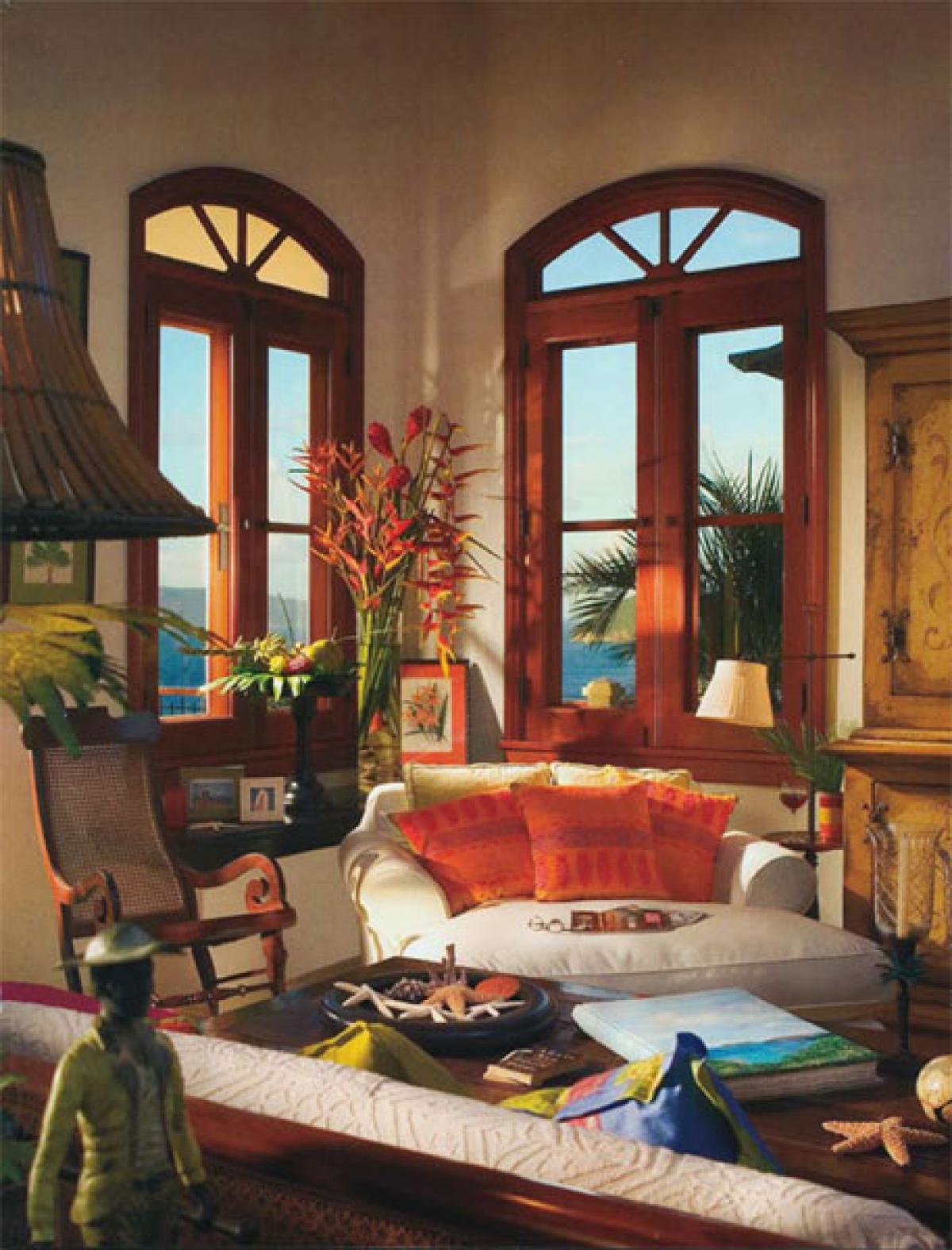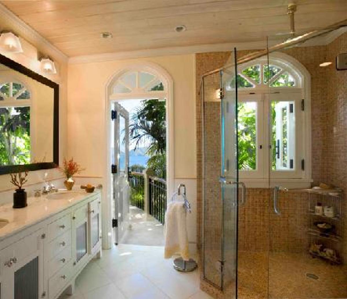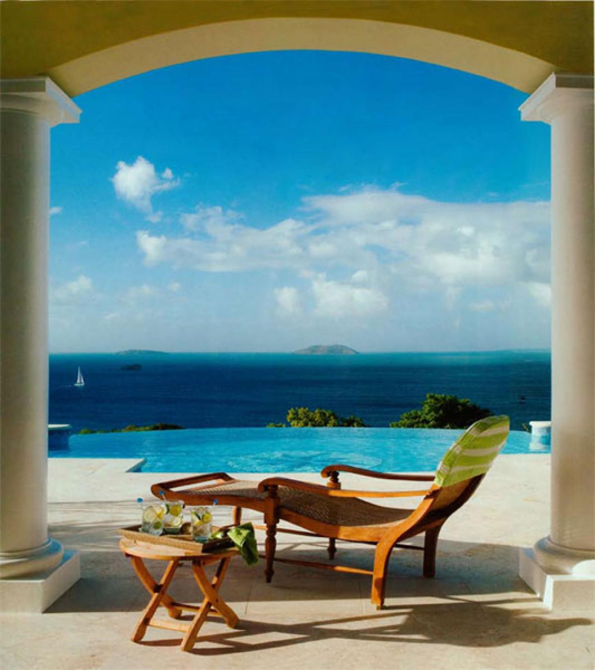 The superior architecture of Hawksview Estate captures the essence of old world sophistication and charm with its lofty exposed beam ceilings and gracefully arched windows and doors. Situated on five very private acres within the Virgin Islands National Park boundaries, Hawksview Estate is located on the north shore of St. John, on the ridge top between Hawksnest Bay and world renowned Trunk Bay, providing a panorama of breathtaking views. The Hawkview Estate house portals rich mahogany woodwork frames, and the interior floors are tiled in Bulgarian limestone and Italian marble. Hawksview Estate's tasteful West Indian architecture showcases the myriad of pristine natural beauty visible at every glance from within the villa, while the stylish mix of Caribbean and European furnishings harmonize to create a casual and comfortable ambiance.