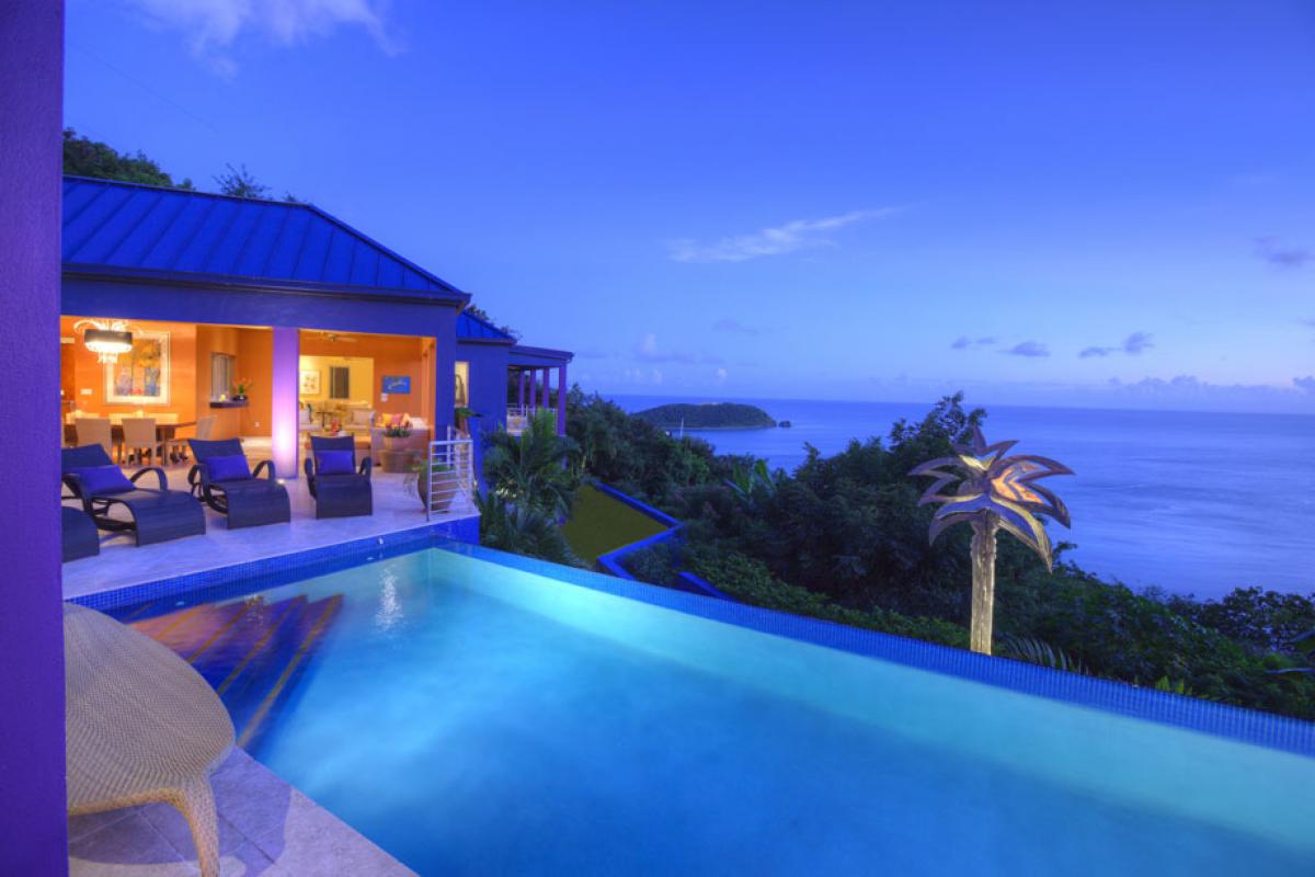This illustrious, well-equipped villa makes the most of its locale, with every room situated to view the majestic vistas of the bay below. Mare Blu features sophisticated design, top-of-the-line fixtures and finishes, luxury hypoallergenic bedding, and the best of everything for your vacation pleasures. On the estate, privacy is well maintained by tall treelines and tropical landscaping. Being just a short drive to Cruz Bay and to a multitude of gorgeous National Park beaches, Mare Blu is well-located and offers plenty of space for everyone to relax and enjoy.