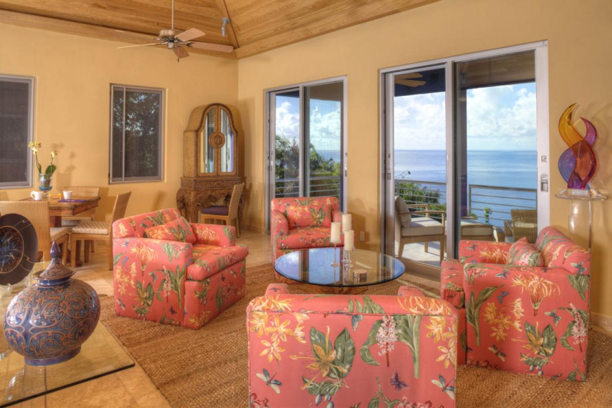 After more than thirty years of island hopping, Mare Blu villa owners, Teri and Bernie Ackerman, found no match for the appeal of the friendly, ethnically, and culturally diverse community of St. John, nor for the beauty of its tropical forests, national parks and secluded sandy beaches. St. John is believed by many to be the most beautiful of the U.S. Virgin islands, if not the most beautiful island in all of the Caribbean. The vacation home of their dreams was built on a hill above the turquoise waters of Rendezvous Bay, looking south, with scenic views that stretch from the east end of St. John to St. Croix, 40 miles across the blue waters of the Caribbean.