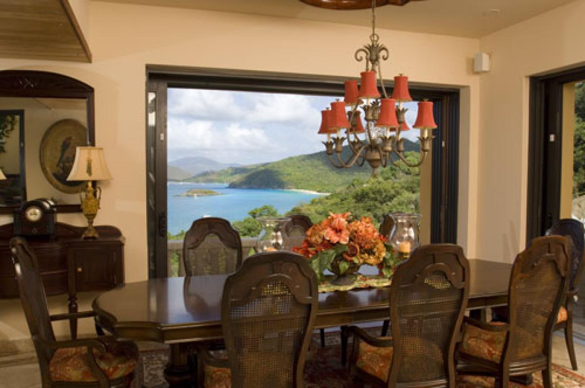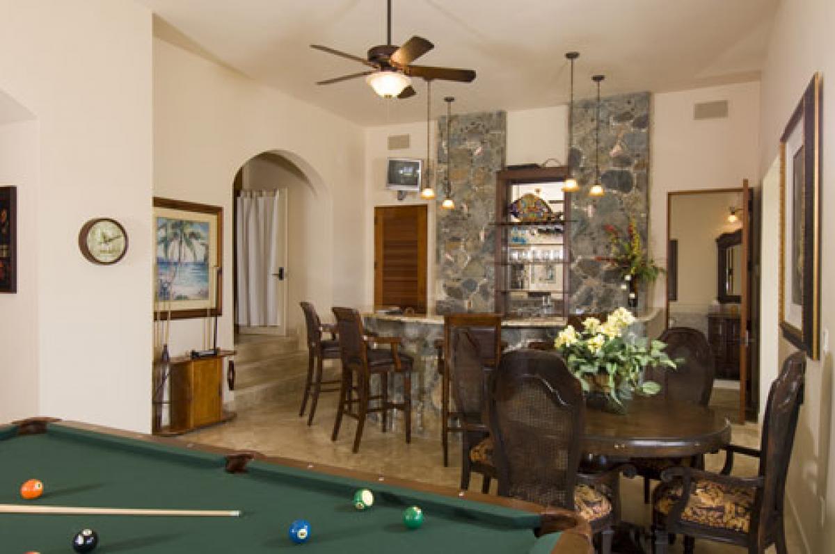 Furnished for the most discriminating traveller, Villa Delfina will cater to your every need. Caribbean colors and Classic West Indian design bring the spirit of the islands into every living space in this luxurious home away from home. Whether you desire an intimate, romantic getaway, or a large family reunion, Villa Delfina is the perfect place for your vacation. Designed with all five bedroom suites under roof, yet privately situated within the villa, Villa Delfina will ensure that everyone has a vacation to dream about for years to come. Villa Delfina provides five luxurious bedroom suites, all with outdoor shower, coffee/beverage mini bar, robes, hair dryers, wireless internet, satellite TV, clock/radio, cd player, and toiletry items. All suites are furnished in classic carribbean tradition of the highest quality. The Master, Leinster Bay, Trunk Bay, and Coral Bay Suites all have king beds and the Bordeaux Suite has a queen bed. Each suite has its own private balcony with views to Tortola, Cinnamon Bay, Mary's Point, and the British Virgin Islands. With sliding pocket doors from all areas or the Game Room and Main Floor, indoor/outdoor living is at its finest here at Villa Delfina. Step from the veranda to the crystal clear pool and watch the boats sail by as you float in heaven. With a pool bath, spa, sun deck, outdoor eating terrace, and tons of balconies, you'll be hard pressed to decide if you want to be inside our outside!