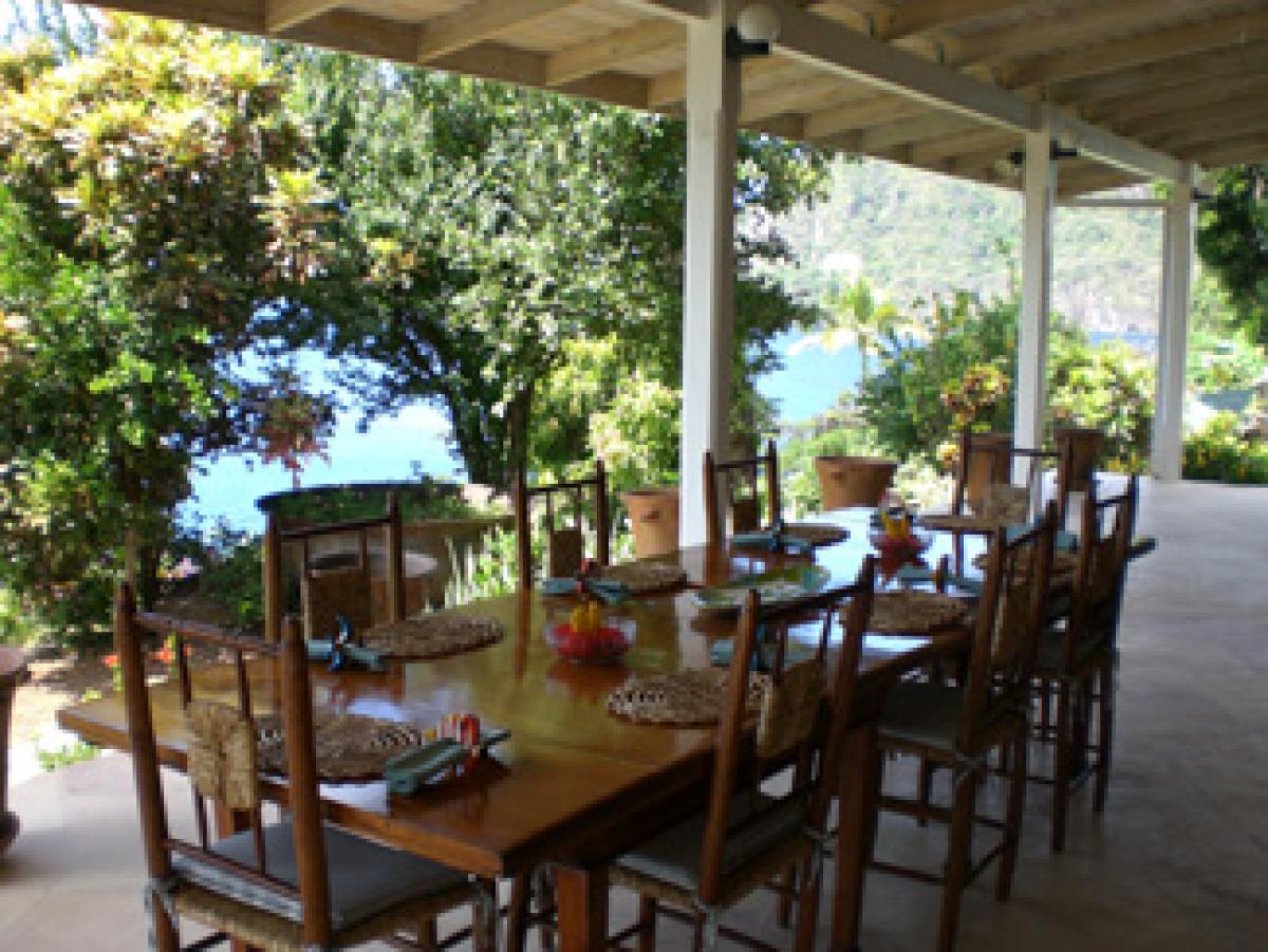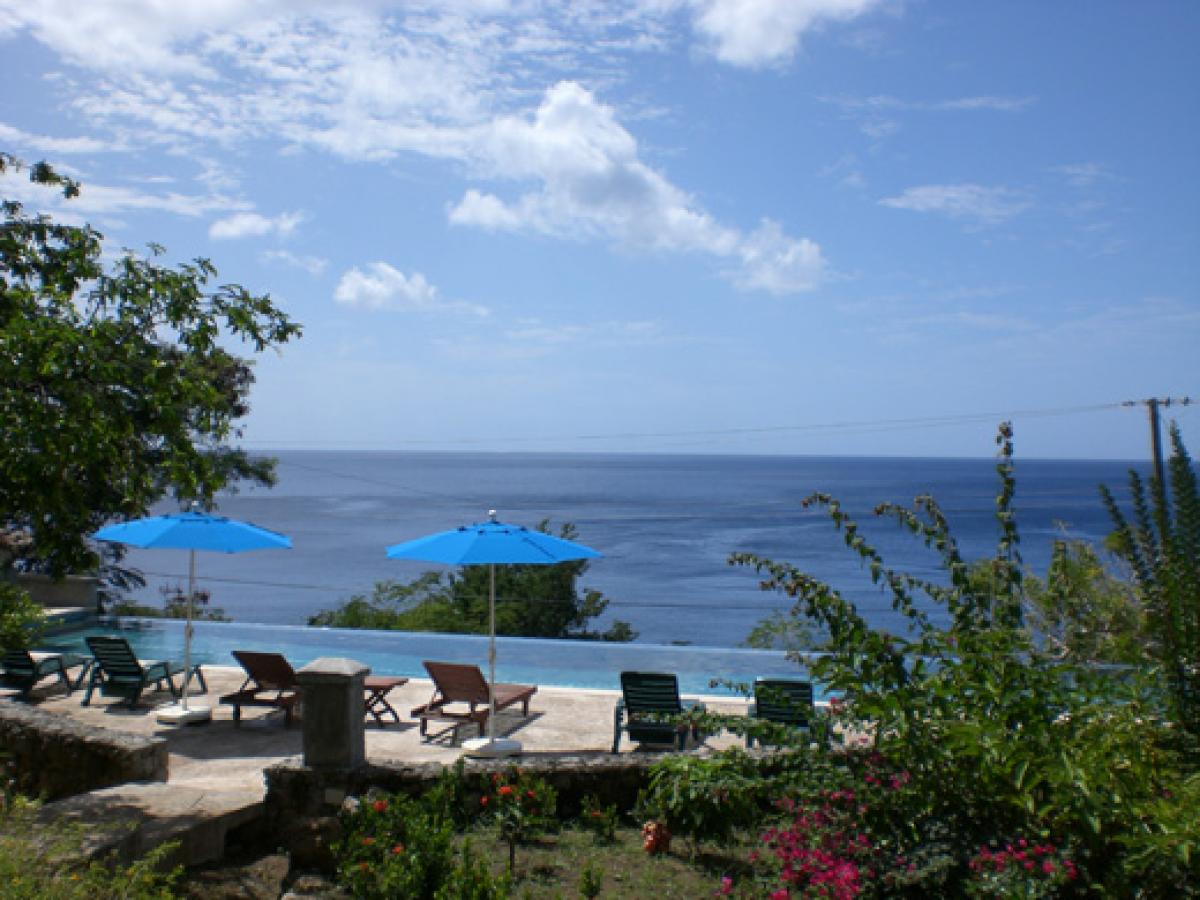 From the deck of Colibri you can see the mast of large sailboats that have docked nearby. Enjoy the view of the Petit Piton and St. Lucia's prized World Heritage site. Colibri (hummingbird in the native language) has it all, including what is believed to be the largest villa pool on the island, perfect for swimming laps or just floating around; lovely flower gardens humming with birds and butterflies; and porches and decks for reading or napping. Yet a short drive away there is much to see and do, such as botanical gardens, a rain forest, hiking, resorts with excellent restaurants, and even a live volcano. The beach is only steps away. The villa is roomy, cozy, and comfortable. Colibri is made up of two adjacent villas. The main villa, with lovely colonial architecture, has two bedrooms with ensuite baths, king sized four poster beds, and attractive common areas. The detached two story villa is divided into two apartments, each with two bedrooms including beds that flexibly convert from king size to twins, two bathrooms, living room/kitchette, and long graceful verandas with cooling ceiling fans and spectacular views. It is the perfect location for a small, intimate wedding, a family reunion, or a group of friends (no more than 12) getting together. It is a quiet, peaceful place, perfect for unwinding and relaxing.