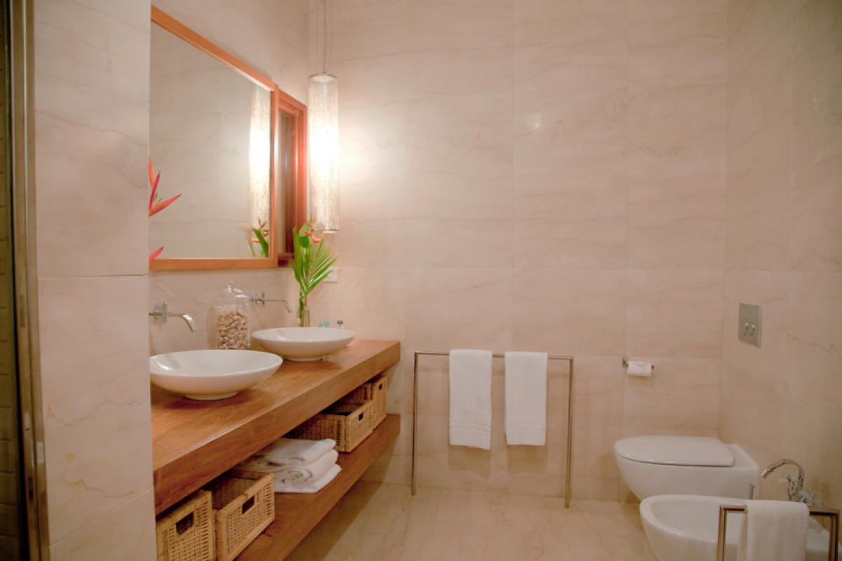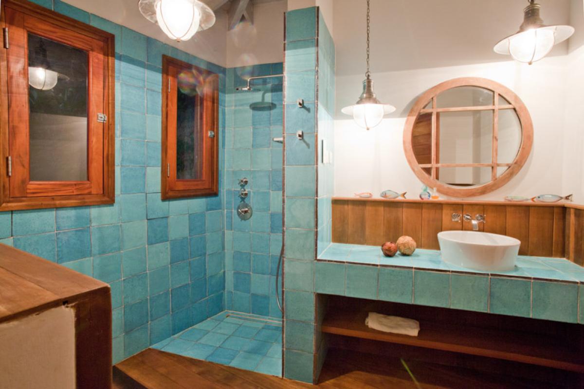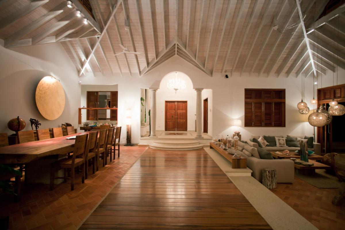 Enter Villa Susanna through a breezy hallway with a beautiful Murano glass chandelier and this leads into a spacious sitting room with ample seating and TV, DVD and stereo and a dining room with a dining table which can seat 20 persons. This room is cooled by ceiling fans. From here you can walk outside through the patio with chairs and a hammock for relaxing, through the garden and over the pool, via a wooden bridge, to the sunset gazebo situated right above the ocean. This has a large round glass table and chairs and can seat 14 persons. The swimming pool is 20 meters long and is 2 meters deep + a shallow end.