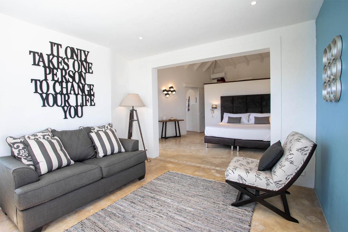 - Bedroom 2: King bed, private bathroom with shower, living area, Smart TV, AC, ceiling fan, private terrace
