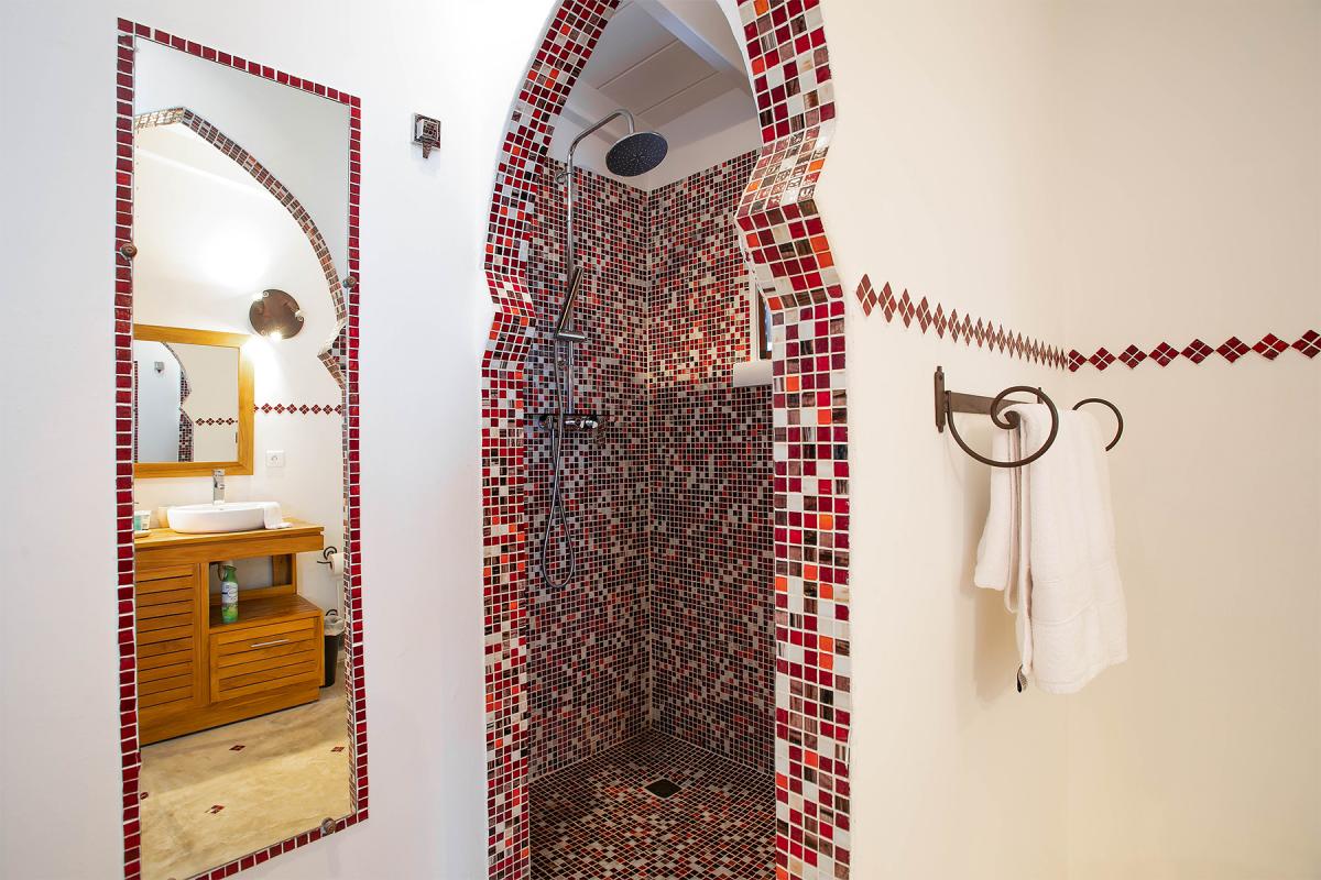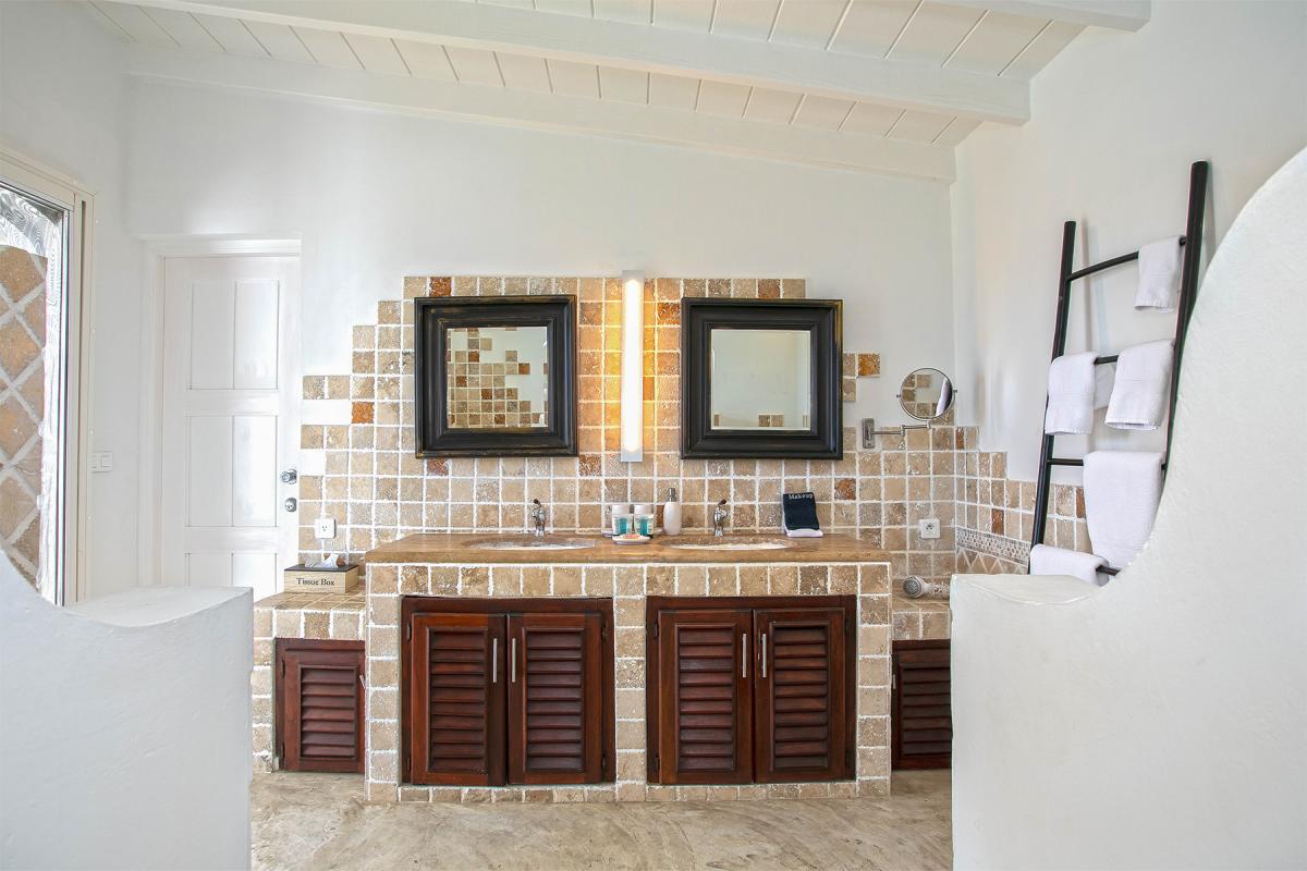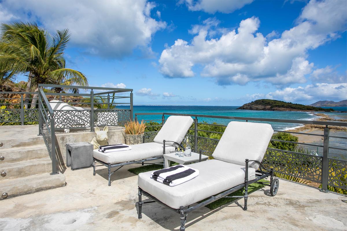The five newly renovated bedrooms, with en-suite bathrooms, are stylishly unique and exotic; each with a different design theme. All have sea views and two have been enlarged to include private seating areas with outdoor terraces. One bedroom is on the first level and only steps from the pool. The two upper level bedrooms each open to the covered terrace but can also connect via a locked shared door via the master bathroom. A seclude outdoor reading area can be found at the end of the covered balcony.