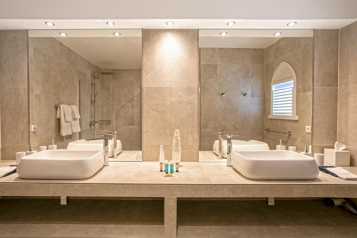 Built on multi-levels to take advantage of the setting, the design creates privacy from every angle. Beautiful native stone work flows through the structure and grounds. The improved terrace areas are dotted with spaces for seating and dining. The fully air-conditioned great room, open to the view and breeze, is fully refurnished in serene colours. Travertine floors run throughout. The fabulous new French kitchen is straight from a design book on Provence. Unique pieces like the antique French butcher’s table, charming accessories and stylish modern stove create the perfect atmosphere to prepare gourmet meals. Garden and sea view surround the kitchen while also overlooking the renovated and enlarged swimming pool.