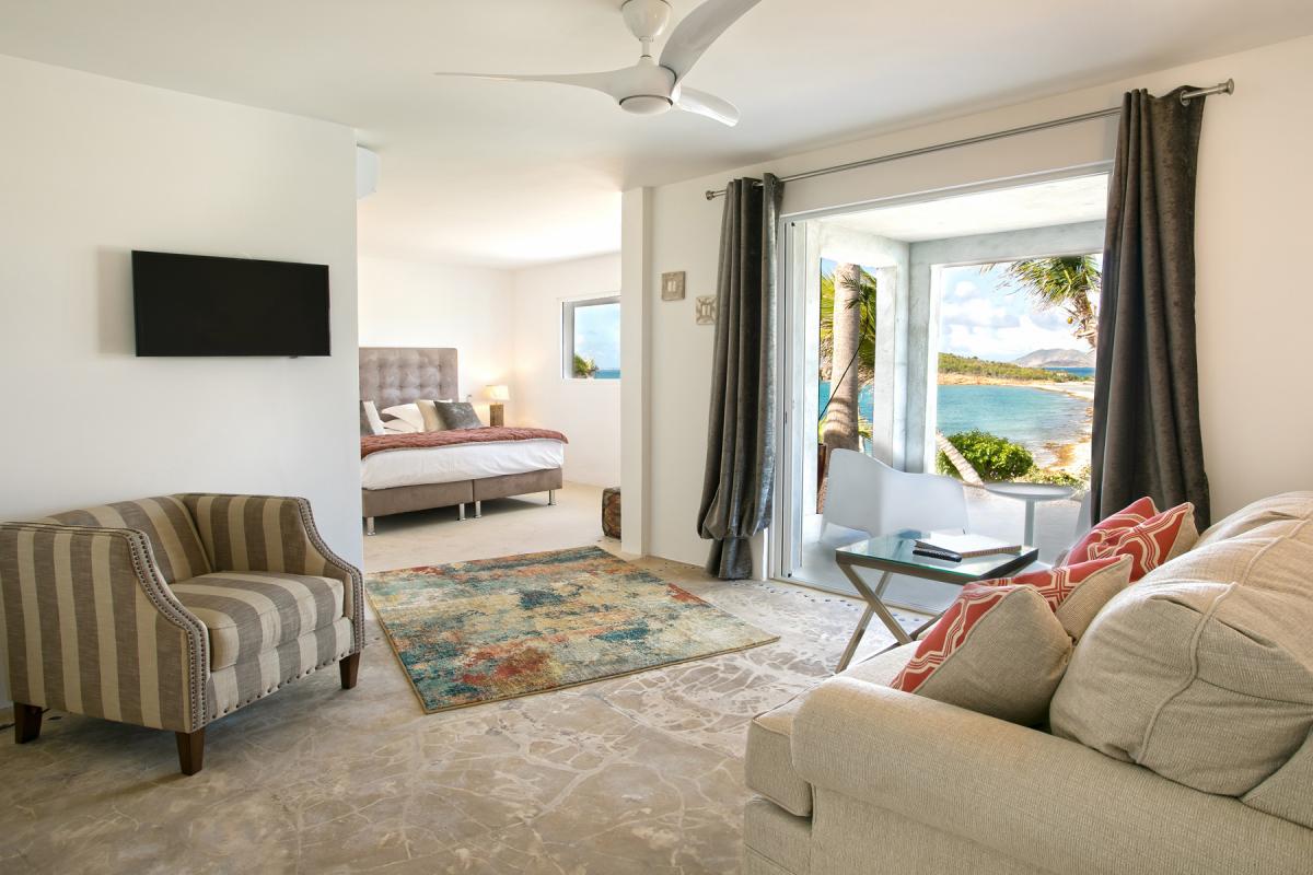 The elegant entrance with its traditional iron gate, coral stone paved courtyard and stonewalls is the perfect showcase for this charming villa. The moment you approach the front door; the stunning panoramic views begin to unfold. With the advantage of a gentle hill setting, the view is a very intimate experience set away from the clamor of daily life. The green mountains, deep blue sea and sky, the sandy beach, Anguilla and tropical foliage flow like a painting. Step through the villa’s private beach gate and you have access to a very secluded sandy inlet.