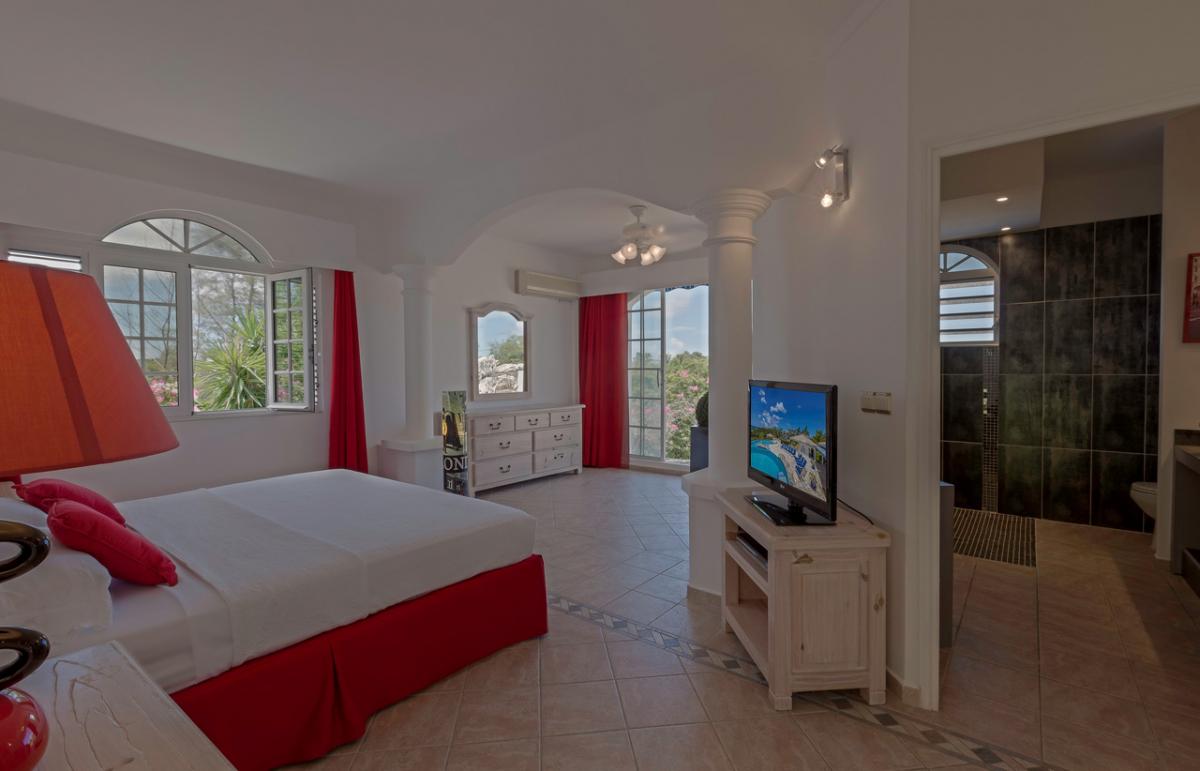 The easy flow from indoor to outdoor living along with lovely sunset views make this villa perfect for entertaining in island style. The villa is just steps away from the beautiful unspoiled beach of Plum Bay.
