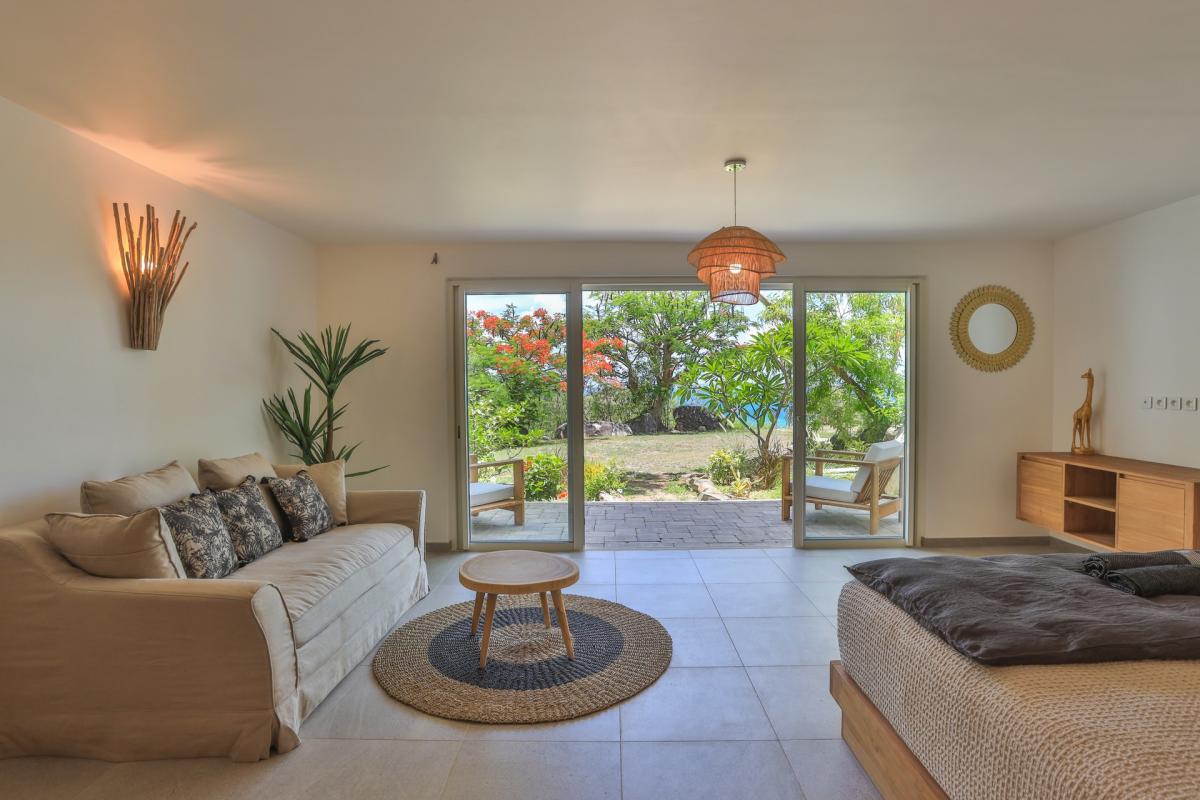 Bedroom 1: This room is equipped with a king-sized bed, an ocean view, air conditioning, a smart TV, a safe, and an ensuite bathroom.