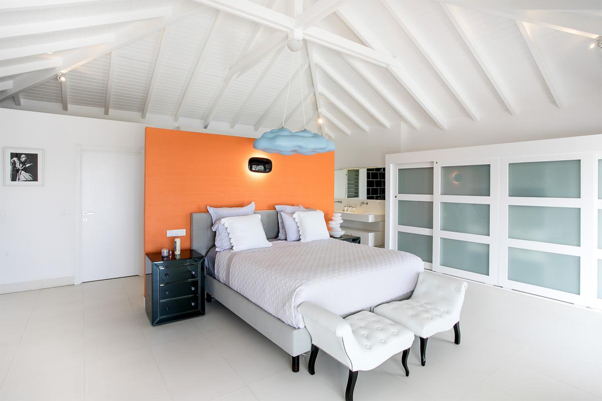 The three king size bedrooms have air-conditioning and access to the pool terrace. Each room has its own color accent of plum, lemon yellow and orange, contemporary art and luxurious en-suite bathrooms with chic Italian stone tiling.
