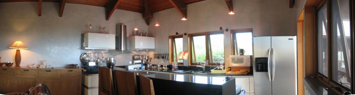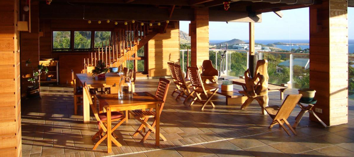 If your perfect vacation is to retreat from the world and relax, the restful ambiance of Haiku is for you. Perched high on the hills overlooking sweeping sunrise views of the ocean and Orient Bay, Haiku is the Indonesian inspired home of an architect, and reflects a level of design, quality craftsmanship, and attention to detail that is perhaps unique to this popular area. The villa comprises two distinct areas. The main living space with living/media room and adjoining gourmet kitchen and dining area, border the sun deck and inviting pool. The sleeping space is accessed by steps, and comprises the master bedroom, which overlooks and has direct access to the pool deck, and second bedroom; both with en suite bathrooms.